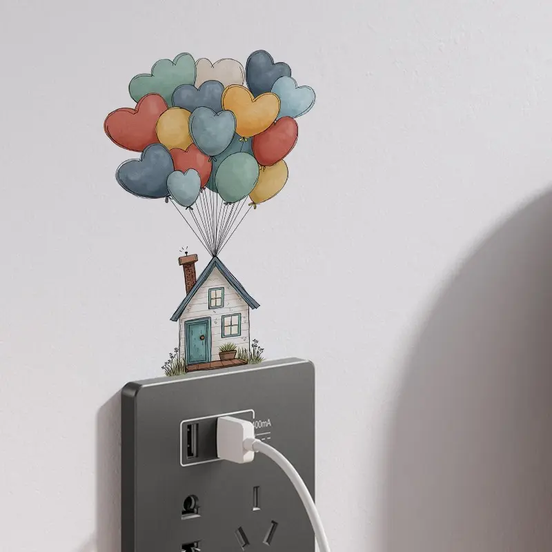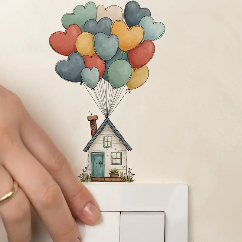 1pc Balloon House Switch Sticker, 2D Flat Sticker, Colorful Balloon and House Design, Removable Self-Adhesive, Home Decoration