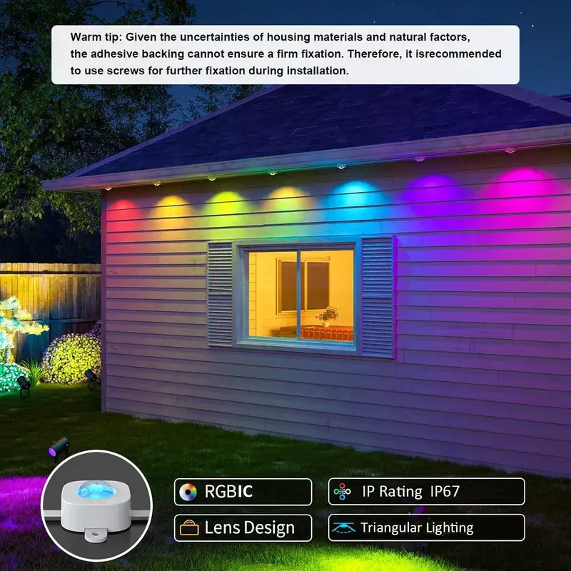 【Important Notes】If white light appears after series connection, refer to this video for troubleshooting. Link: qr1.be/ZTC62E【Remote Control】: Easily manage the outdoor lighting via app or voice commands for added convenience and accessibility.【All-Weather Durability】: With an IP67 waterproof rating, this light withstands harsh weather conditions for year-round outdoor use.【Expandable Length】: The 15-meter length can be extended, allowing customization to fit various outdoor spaces or projects.【Vibrant RGB Colors】: Enjoy a wide spectrum of RGB colors to create various
