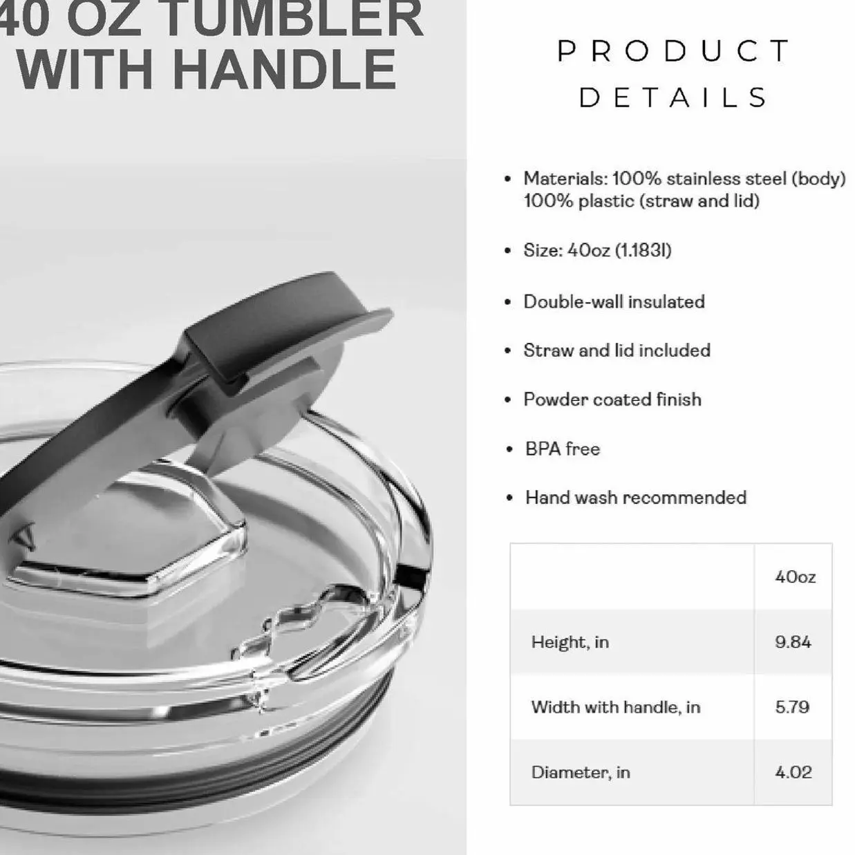 Ergonomic Handle (40oz): Designed for easy carrying all day long.