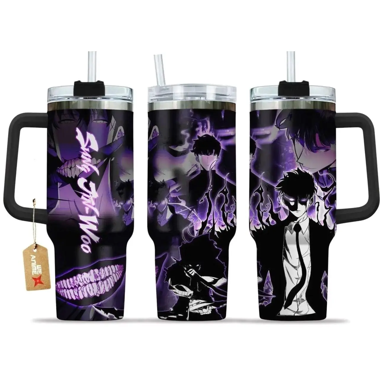 [Sip40 Otaku] Solo Leveling Sung Jin-Woo 40oz Tumbler With Handle – Shadow Monarch Stainless Steel Travel Mug, Anime Iced Coffee Cup, Manhwa Gift for Otaku & Gamer
