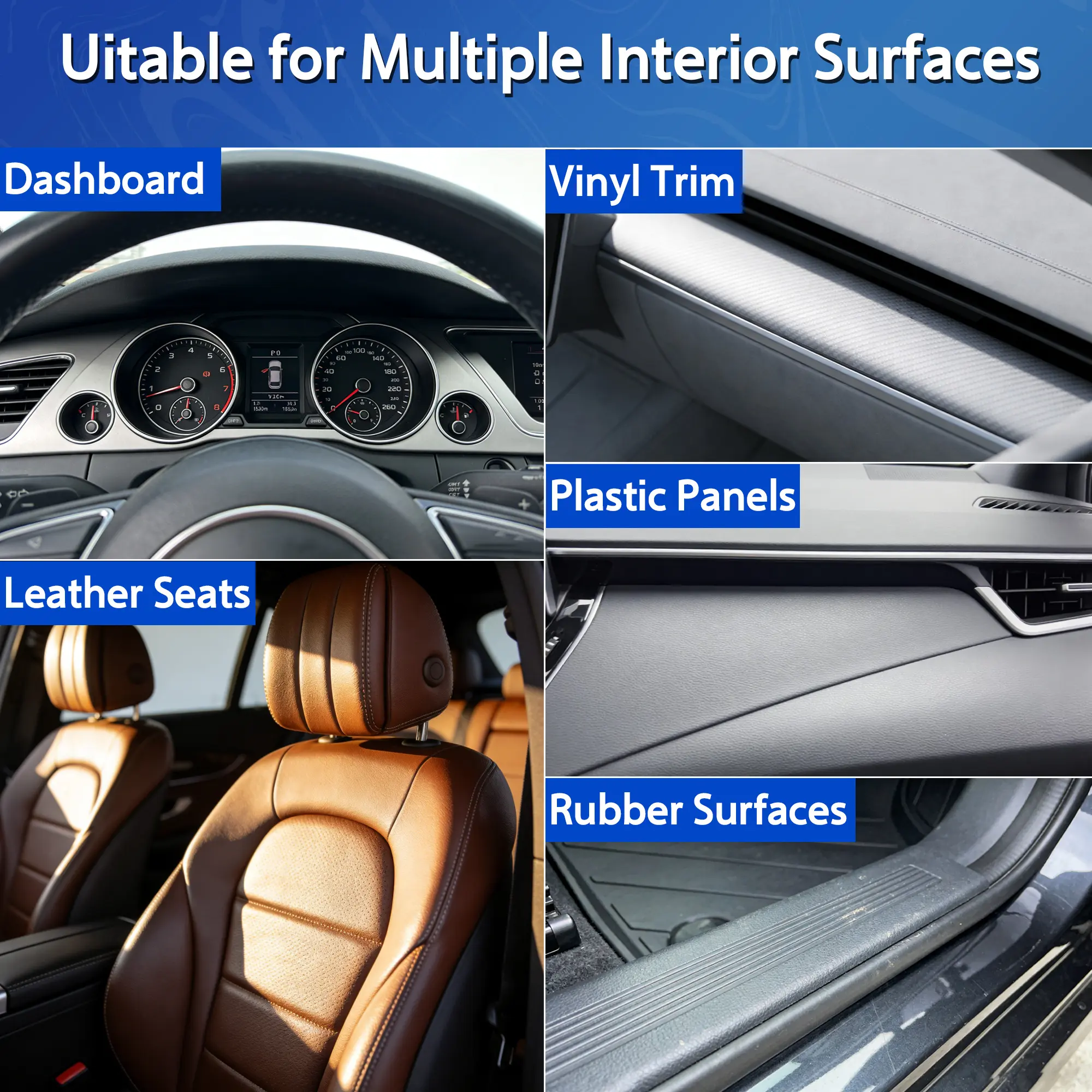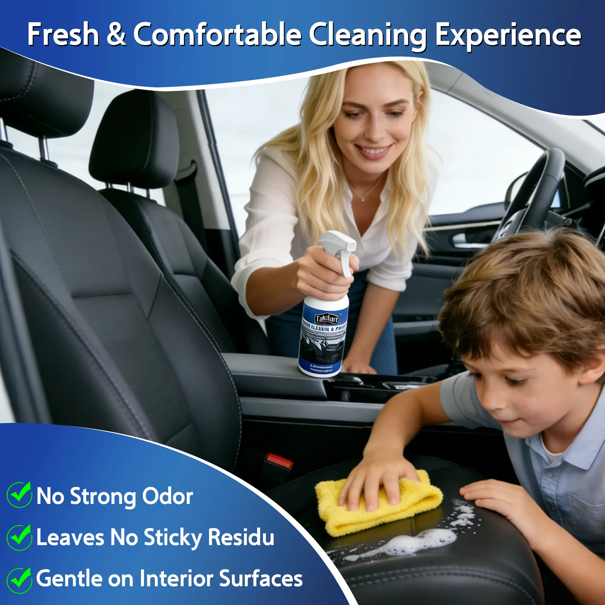 Keep your car interior clean, fresh, and well-maintained with this all-in-one interior cleaner spray—now including a microfiber towel and cleaning sponge for a complete detailing kit. This multi-surface interior detailer is designed to remove everyday dirt, dust, fingerprints, and stains from dashboards, leather seats, vinyl, plastic, and trim. Simply spray and wipe to restore a clean, natural look without leaving behind any sticky residue. The fast-drying formula makes cleaning quick and hassle-free, so you can finish the job and get back on the road without waiting. Unlike heavy cleaners, it features a low-odor design with no strong or unpleasant smell, making it comfortable to use even in enclosed spaces. For added convenience, the bottle comes with a mode spray nozzle—spray for even coverage and off for secure storage. The off setting helps prevent leaks and spills, making it easy to store or carry without mess. Whether you're doing a quick touch-up or a full interior detail, you have simple and reliable control with every use. How to Use: