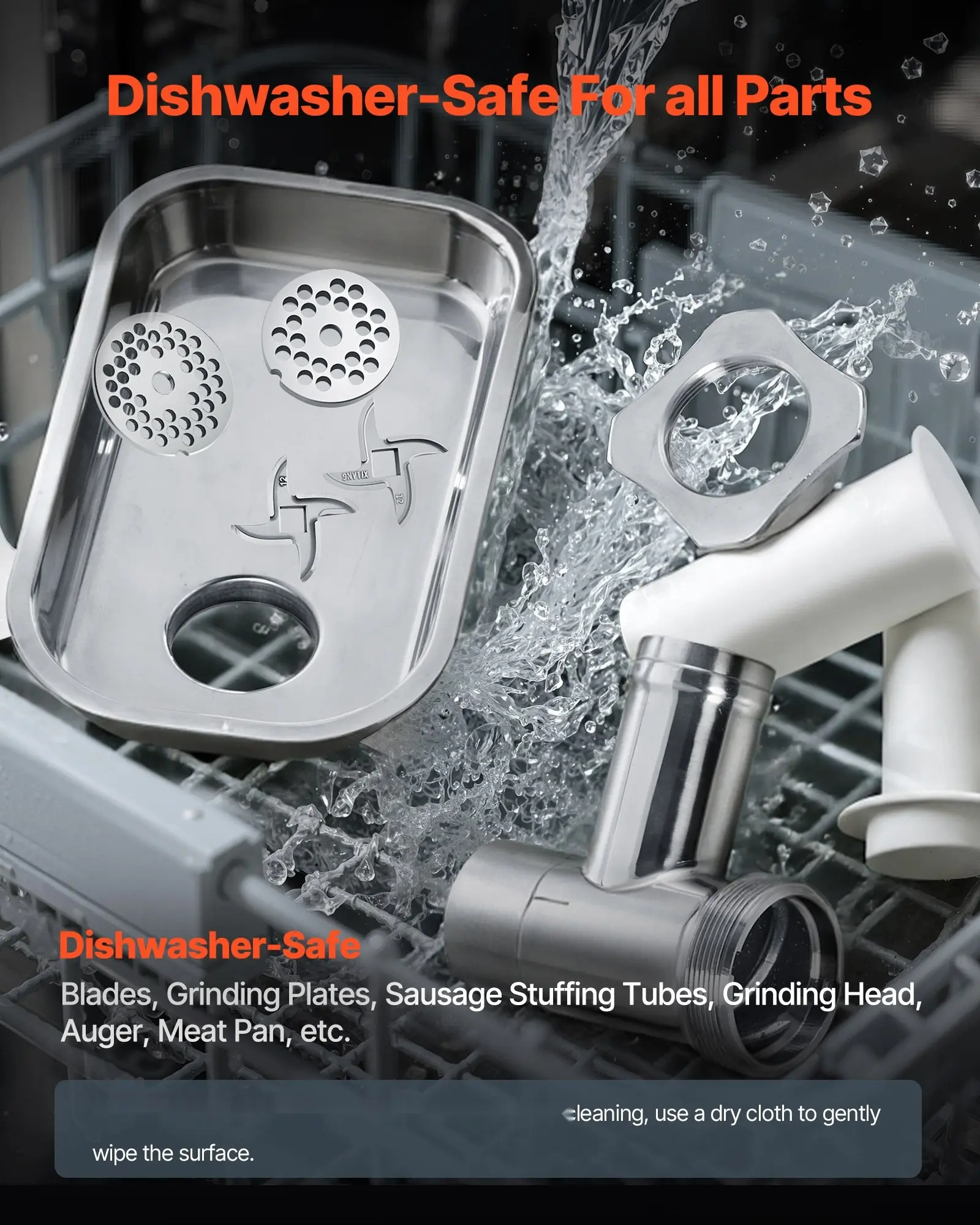 ·Thoughtful Details: Featuring a waterproof boat-shaped switch with reverse function, this electric meat grinder avoids jamming and splattering, includes a reset button for protection, and has a detachable head design for easy operation and hassle-free cleaning