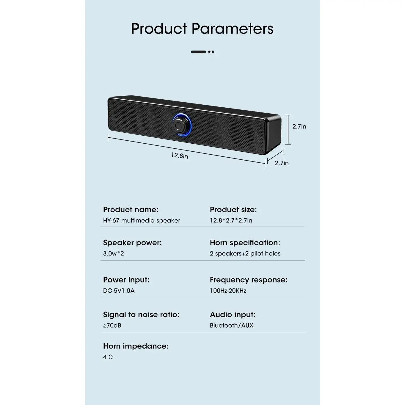 This soundbar is USB powered, ensuring easy and convenient operation without the need for additional wiring or power supplies.