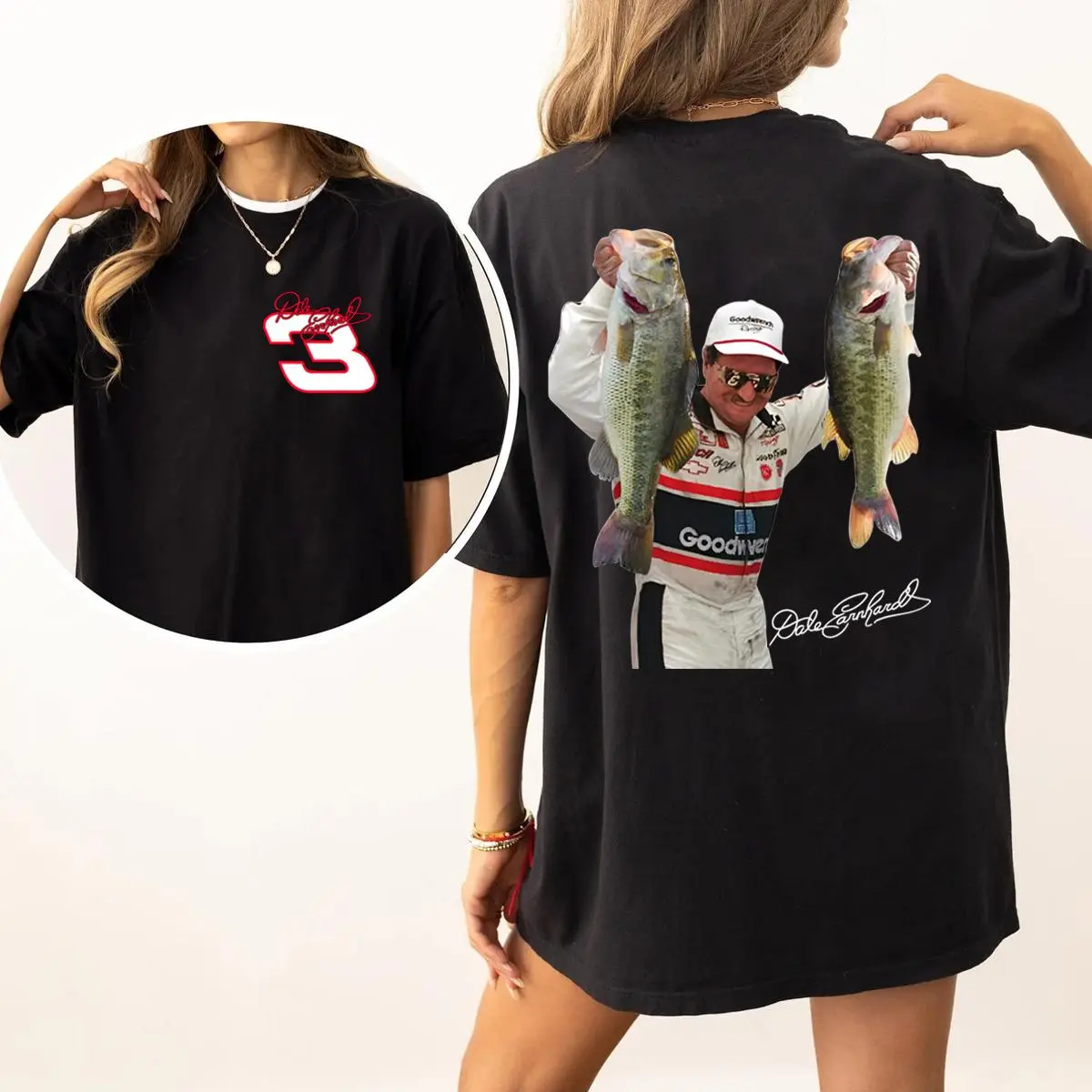 Dale Earnhardt Bass Fishing 2 Sided T-Shirt, Nasscar Legend Shirt, Unisex
