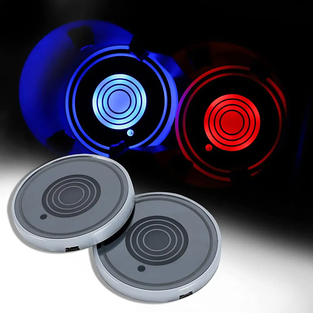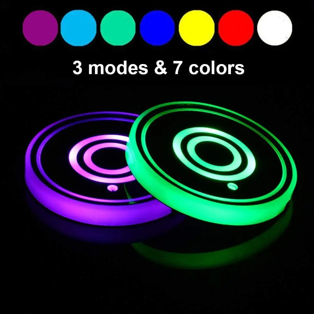 2PCS LED Cup Pad 7 Colors Cup Holder Light Cover Interior Decoration Accessory