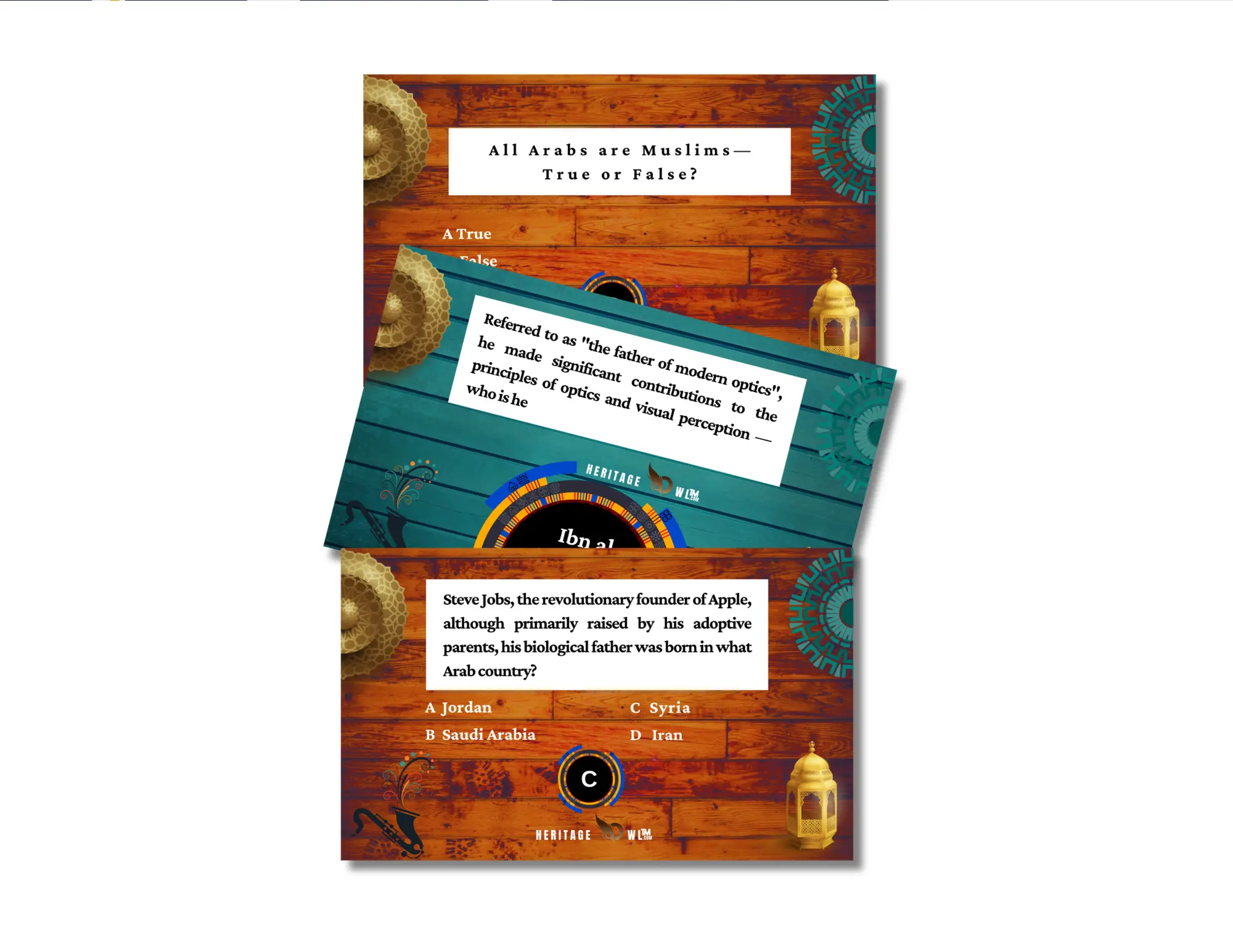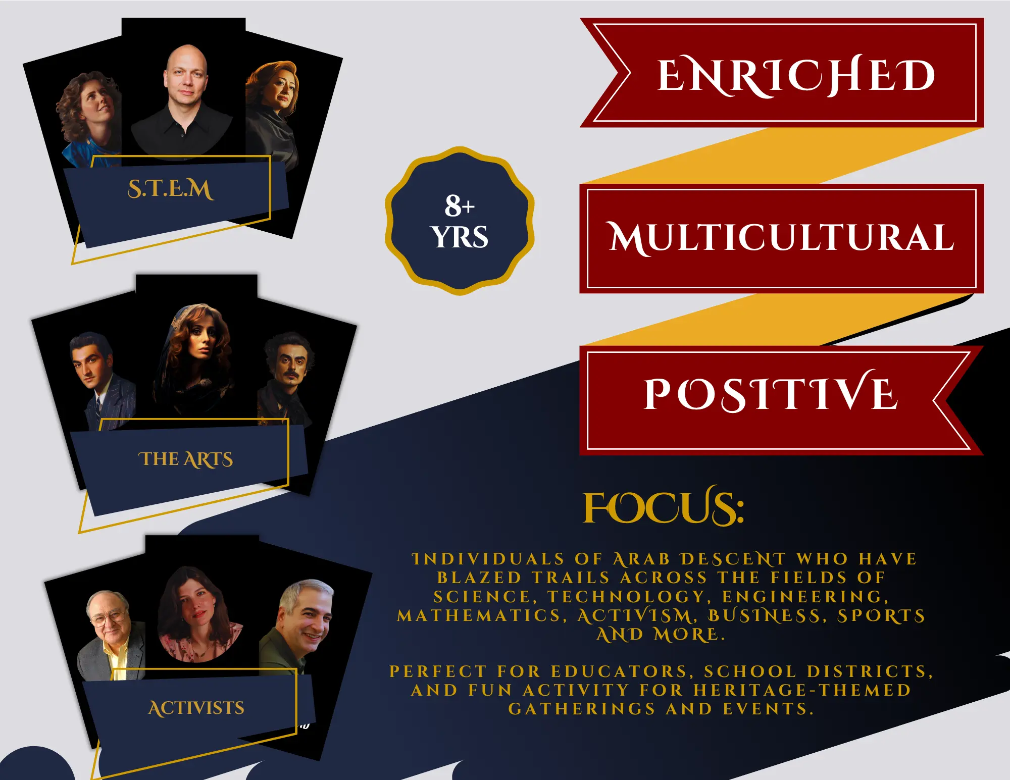 60-PCS TRIVIA & FLASHCARDS: Educational Bundle. 60 Card Deck Trivia & Flashcards on inspiring individuals of Arab heritage who blazed trails across the fields of science, technology, engineering and mathematics (STEM), arts, activism & more.