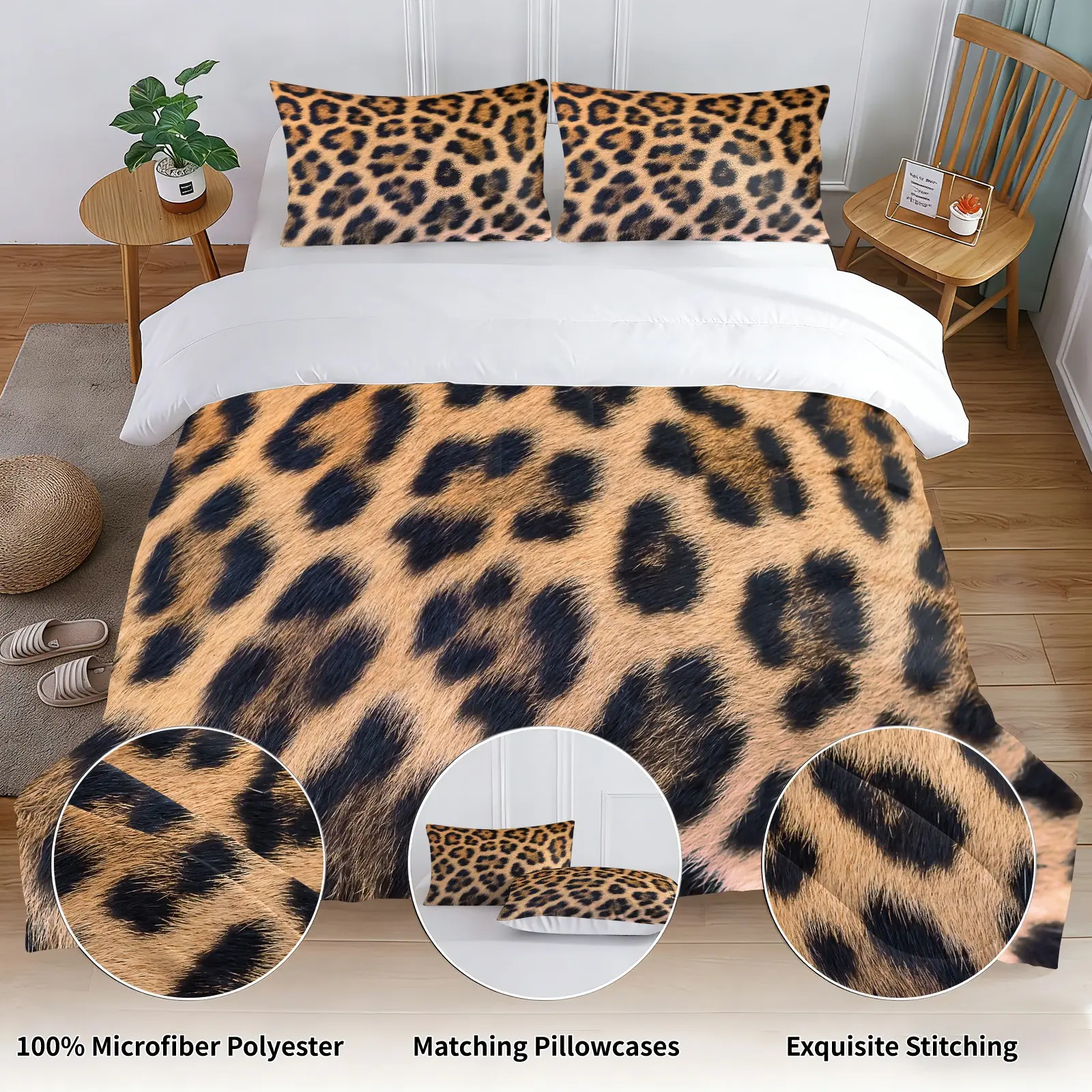 Leopard Print Comforter Set,Soft Microfiber Bedding Set with Pillowcases,Africa Leopard Pattern Duvet Set for Kids Boys Girls Children Women Bedroom Decorative,Full Size