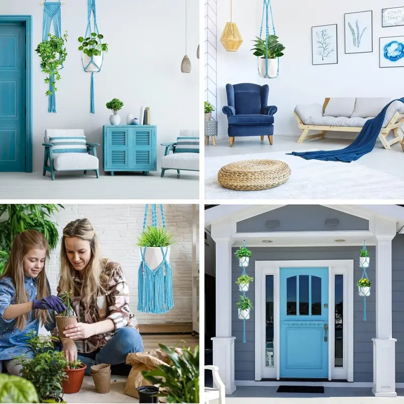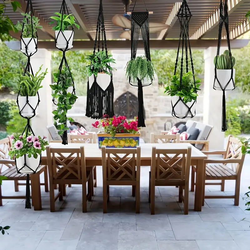 6-Pack Handmade Woven Plant Pot Hangers, Indoor And Outdoor Flower Pot Hanging Baskets, Handmade Woven Plant Hanging Stands, Suitable For Bohemian Home, Patio, And Garden Decoration (Plants And Flower Pots Not Included)