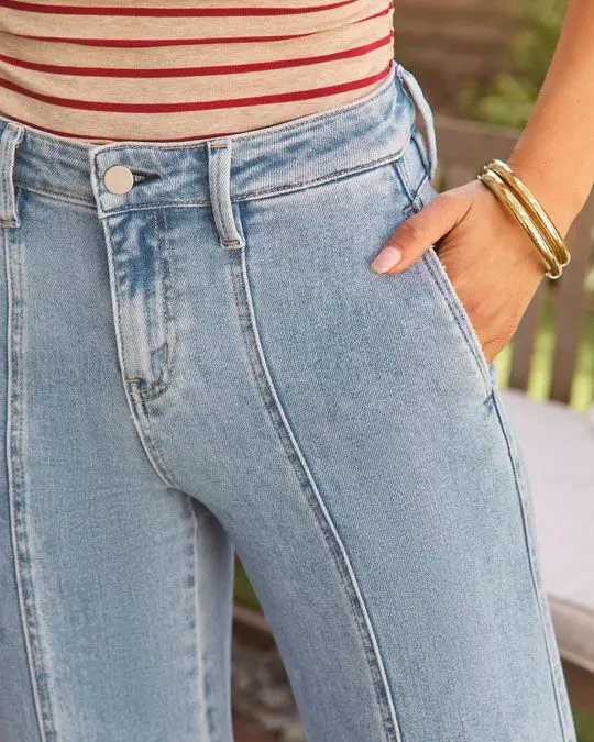 Trendy Womens Jeans with Unique Seamed Design:The front seamed detailing on these straight leg jeans creates a flattering silhouette that's both stylish and timeless. The clever stitching accentuates your curves while the wide leg design offers modern sophistication