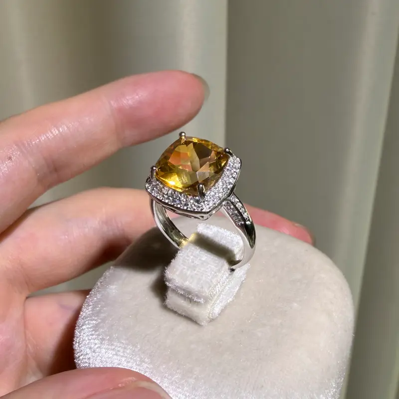 S925 sterling silver ring, Nature Citrine gemstone, adjustable size, set size wirh a 8*8mm, high quality setting Engagement Ring, Elegant and Luxurious for Women,,Grils as Wedding&Birthday Gift, Perfect for Daily Wear and Party, Valentine's Day Gift