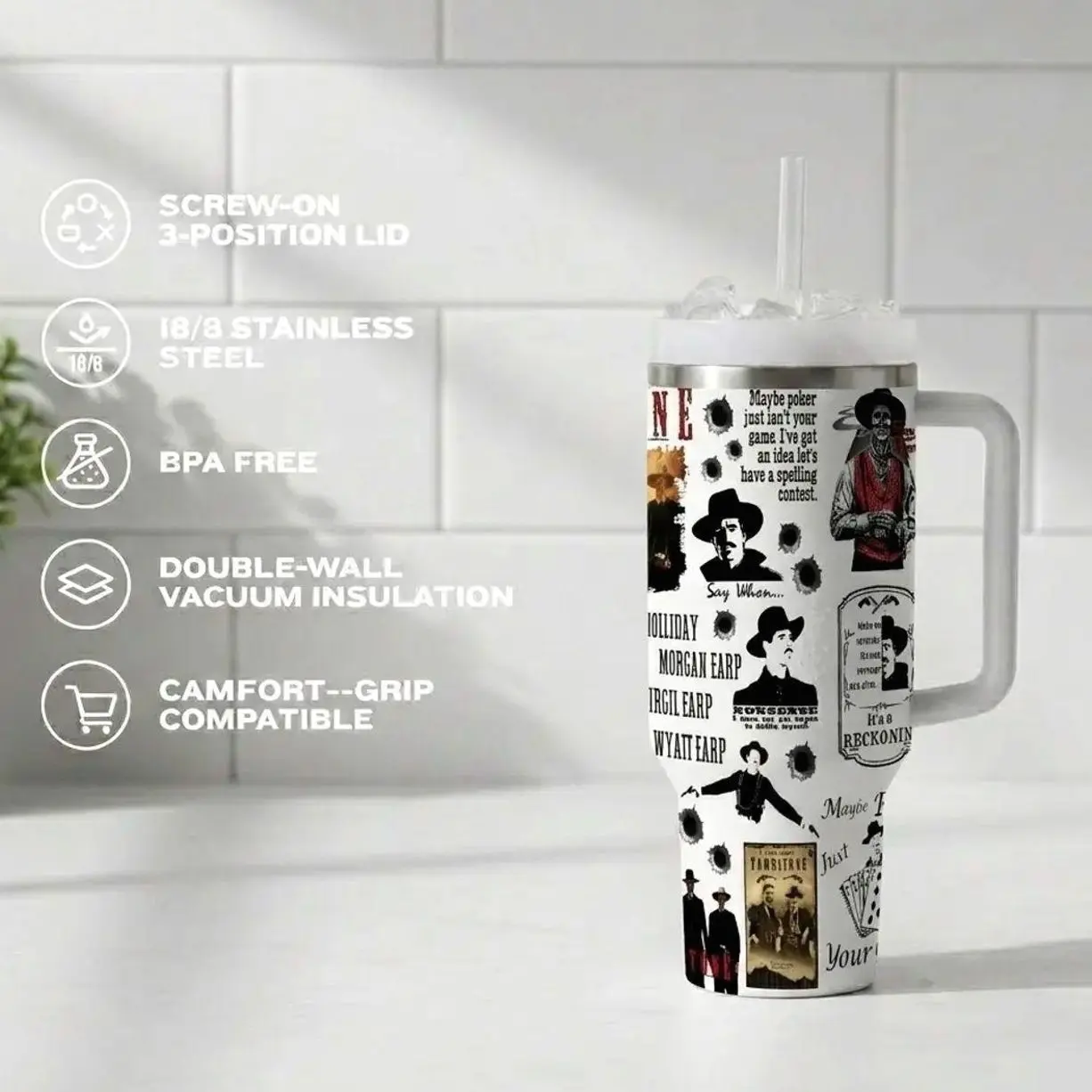 Doc Holiday 40oz Tumbler Val Kilmer Tombstone Tribute For Movie Buffs & Western Fans