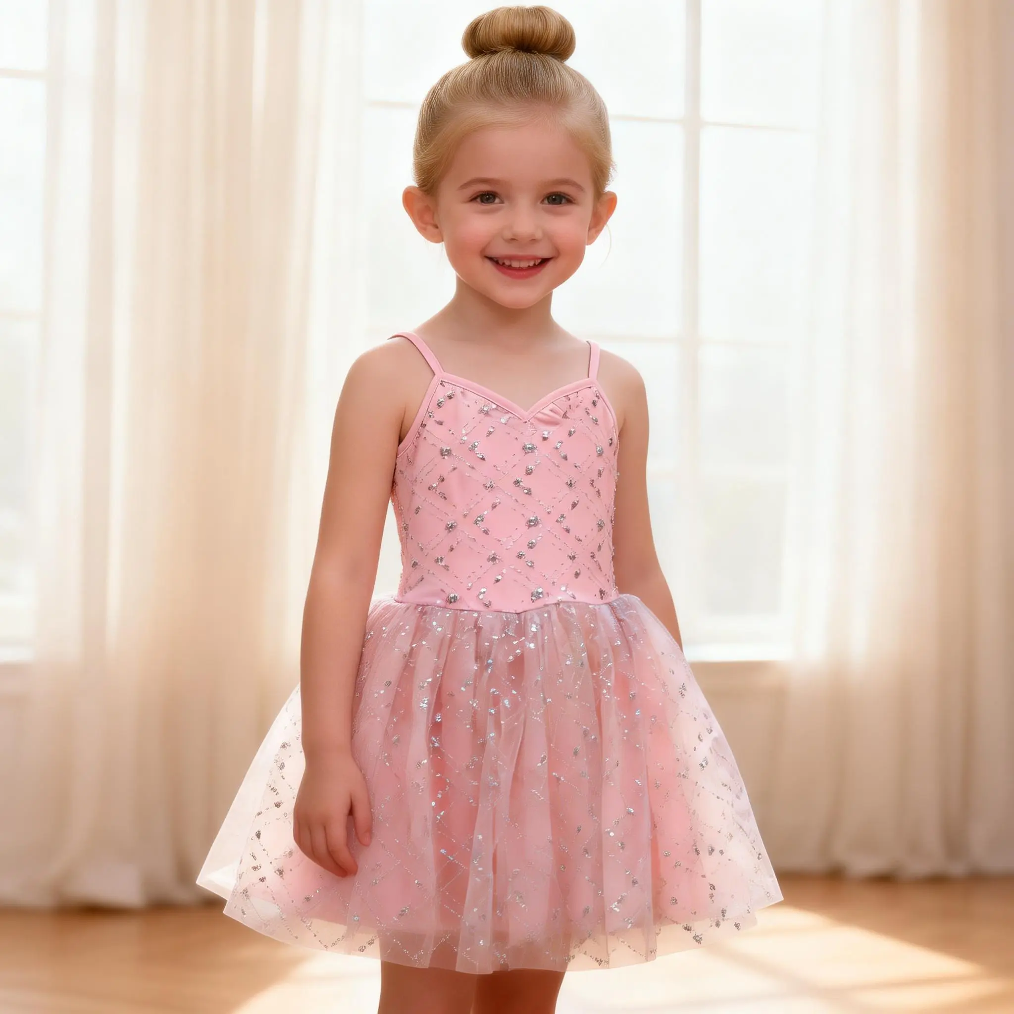 Little Girls Glitter Ballet Dress | Sequin Pink Yellow Tulle Tutu Dress for Performances