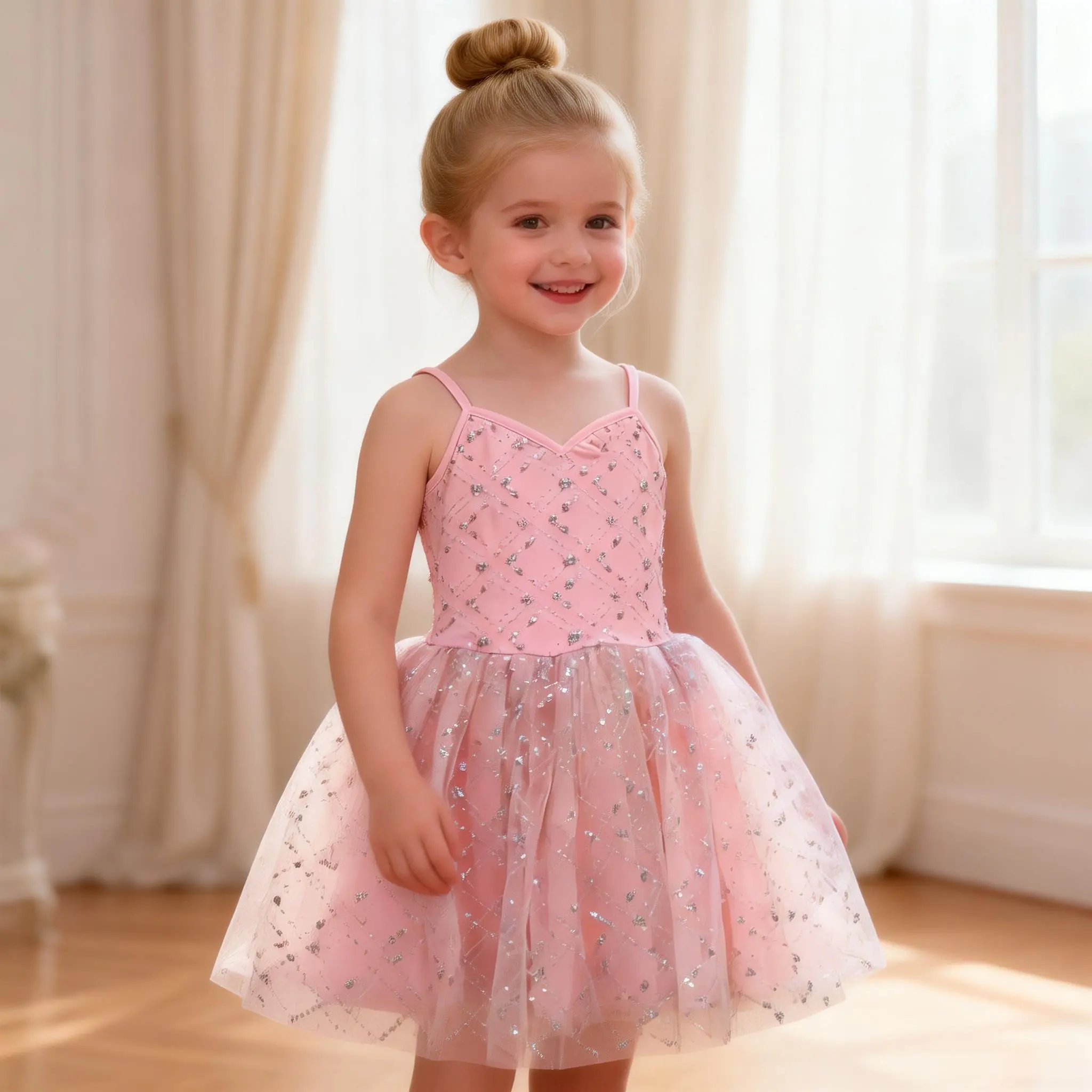 Girl Sequin Ballet Tutu, Pink Sparkle Tulle Sleeveless Princess Dress for Dance Recitals & Birthday Parties