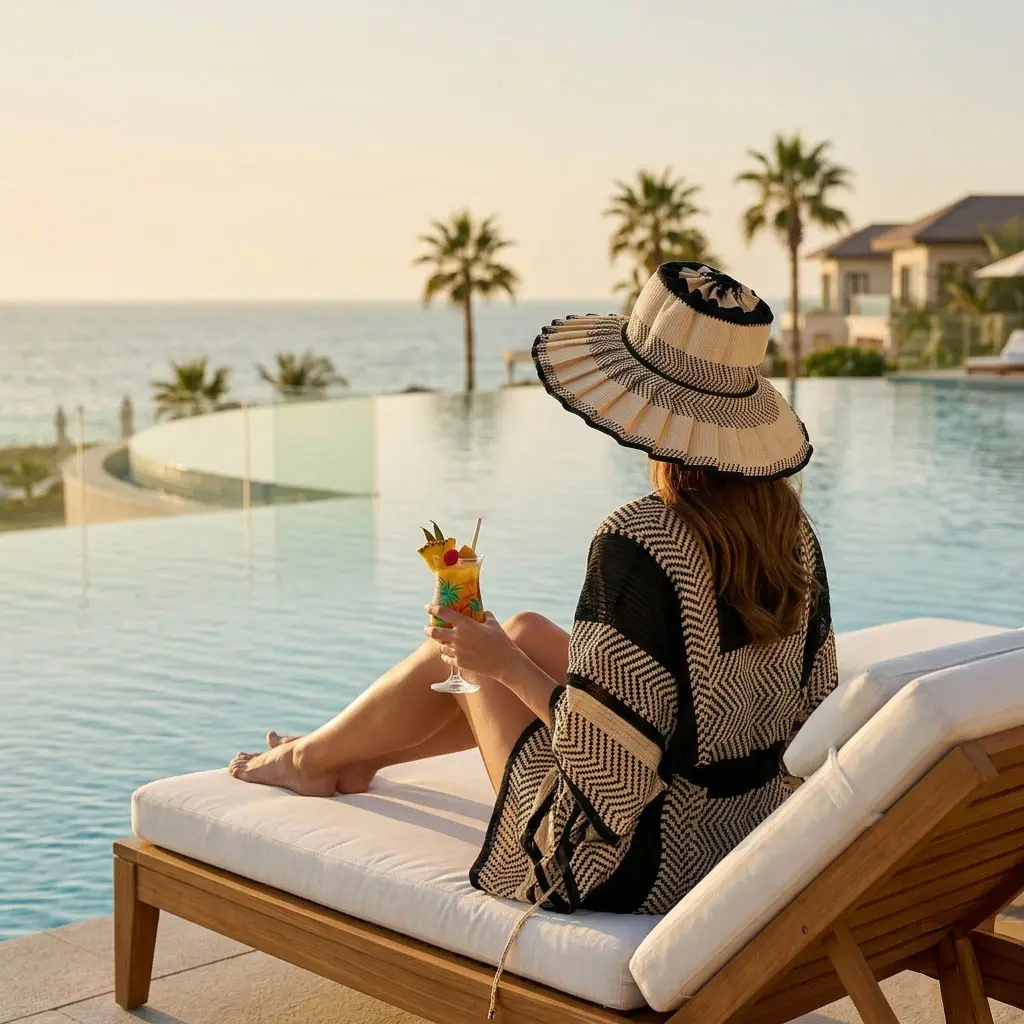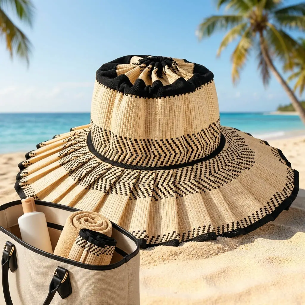 ·Elegant Style for Every Occasion: Featuring a sophisticated geometric pattern and classic black-and-cream contrast, this hat is more than just sun protection—it’s a fashion statement. Pair it with a sundress or swimwear for beach trips, cruises, outdoor weddings, or chic city strolls.