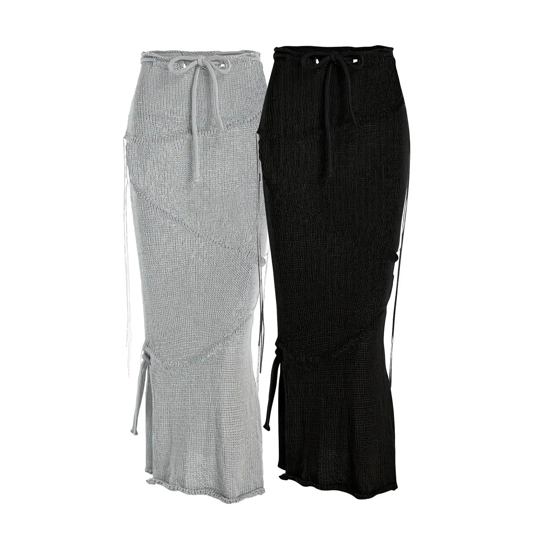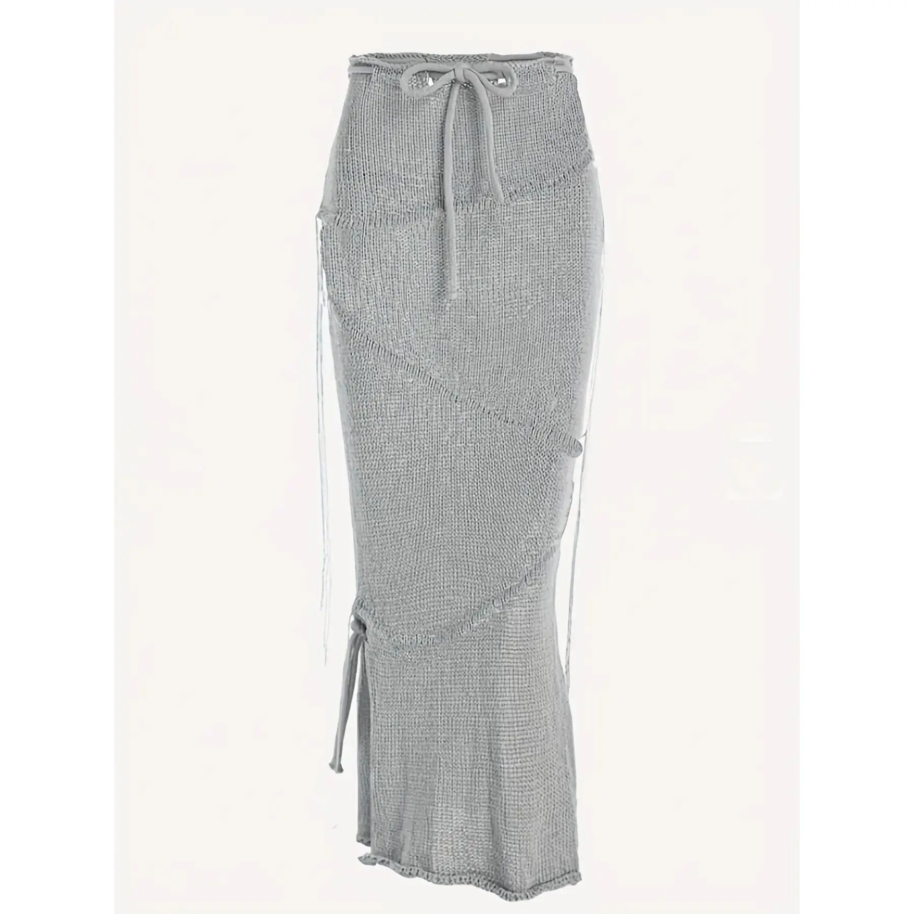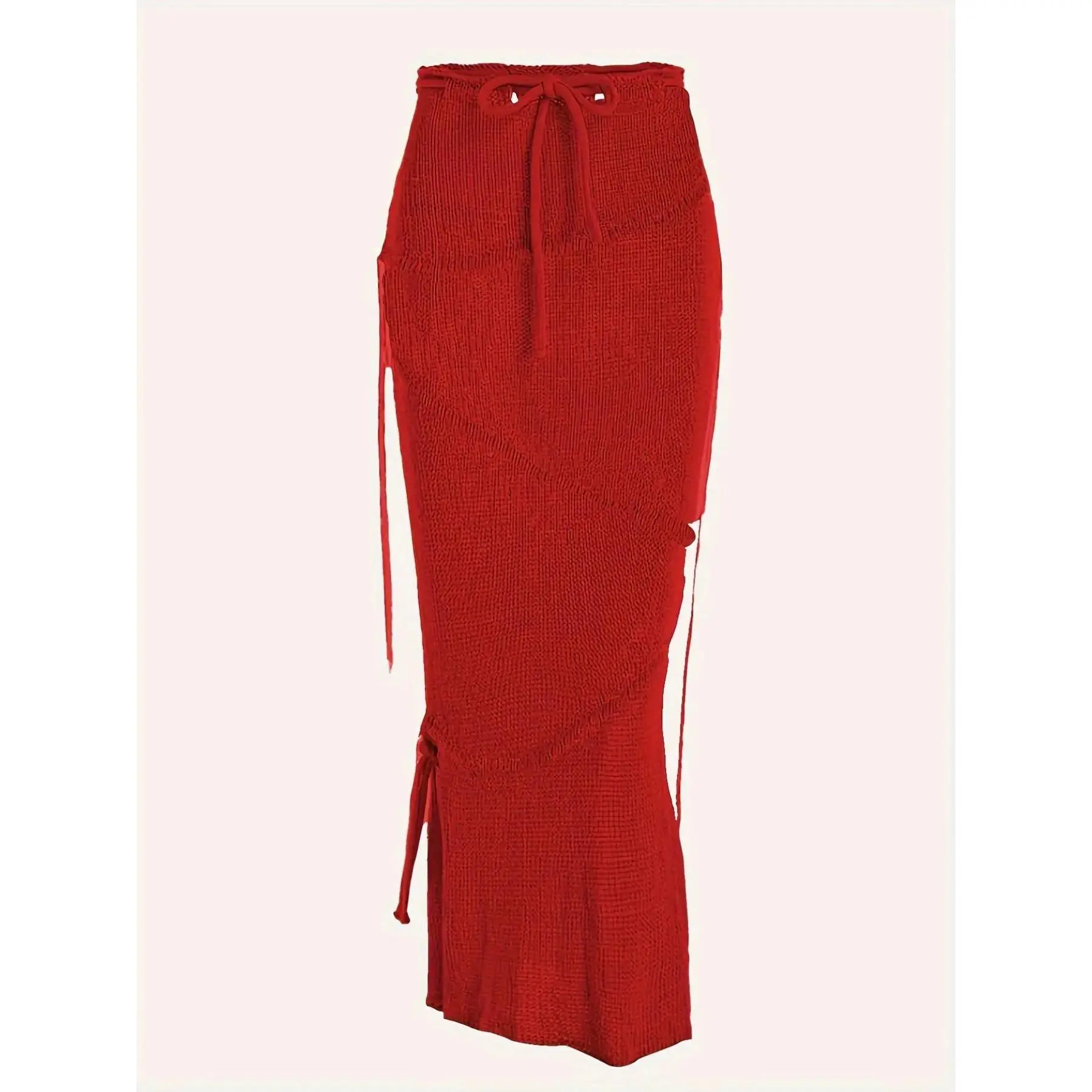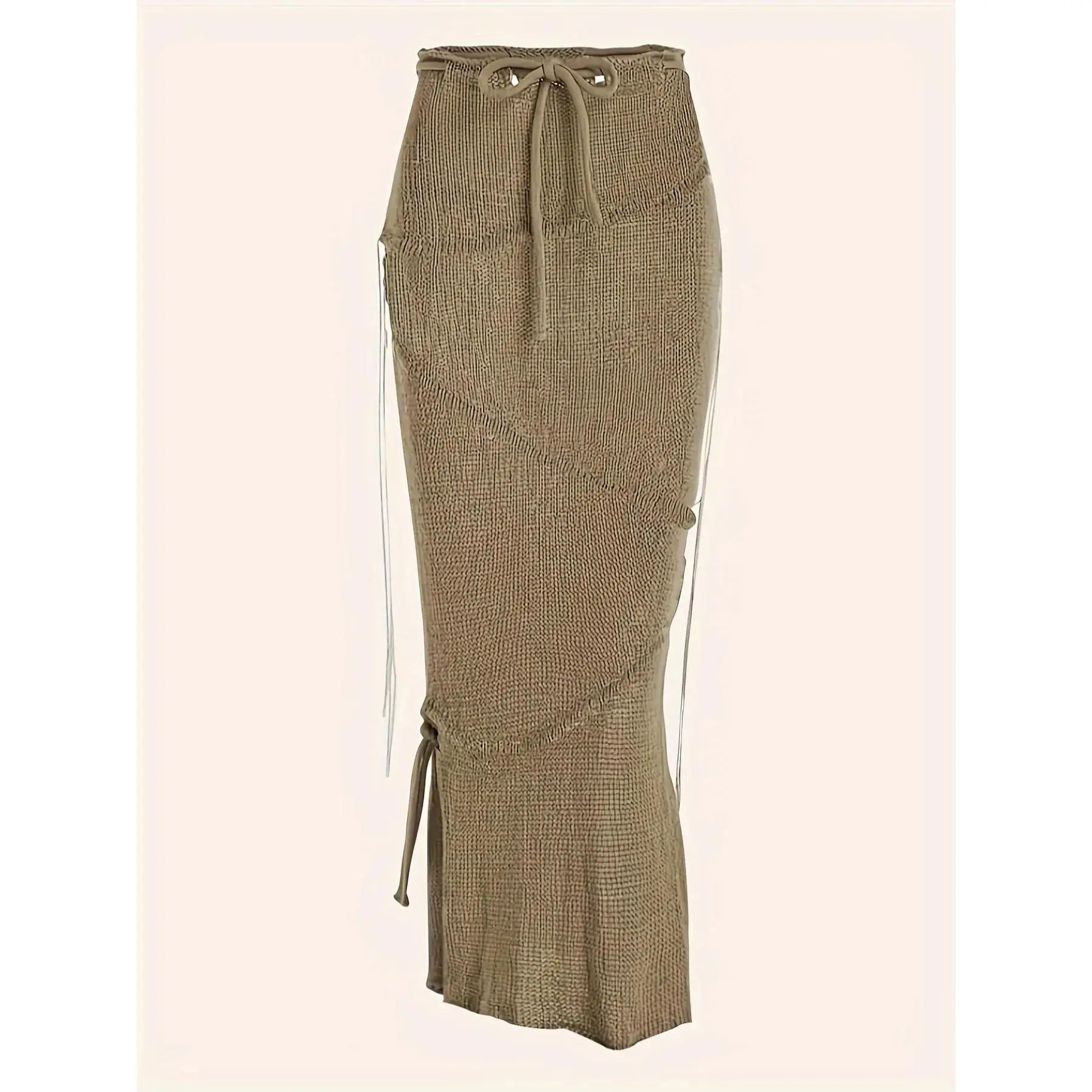 Solid Drawstring Split Side Tassel Sweater Skirt, Elegant Fashion Casual Tie Side Pencil Skirt for Daily Outdoor Wear, Women Knitwear for Spring Fall, Boho Skirt