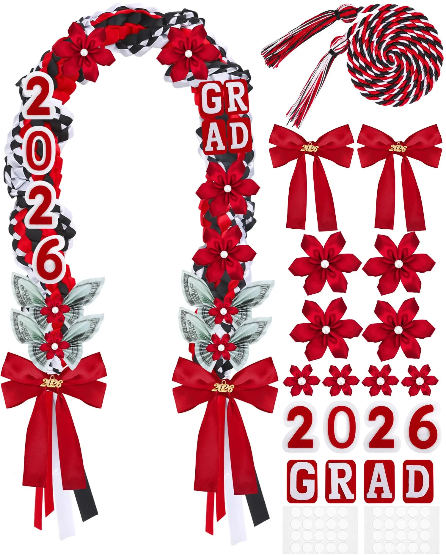 Made of quality satin ribbon and decorated with lovely ribbon flowers, these graduation leis are soft, durable and comfortable to wear. The double braided structure is firm and not easy to loose, suitable for long time wearing in graduation ceremony, party and photo taking.