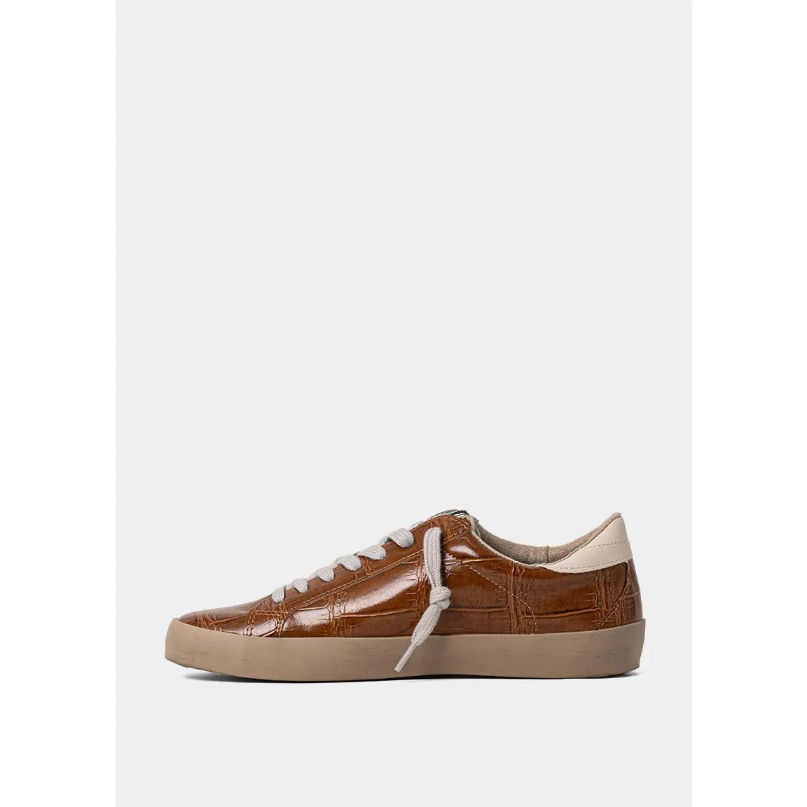 PAULA Camel Croco Sneaker with Faux Croco Texture Rich Camel Color Lace-Up Closure Neutral Rubber Sole Statement Star Patch