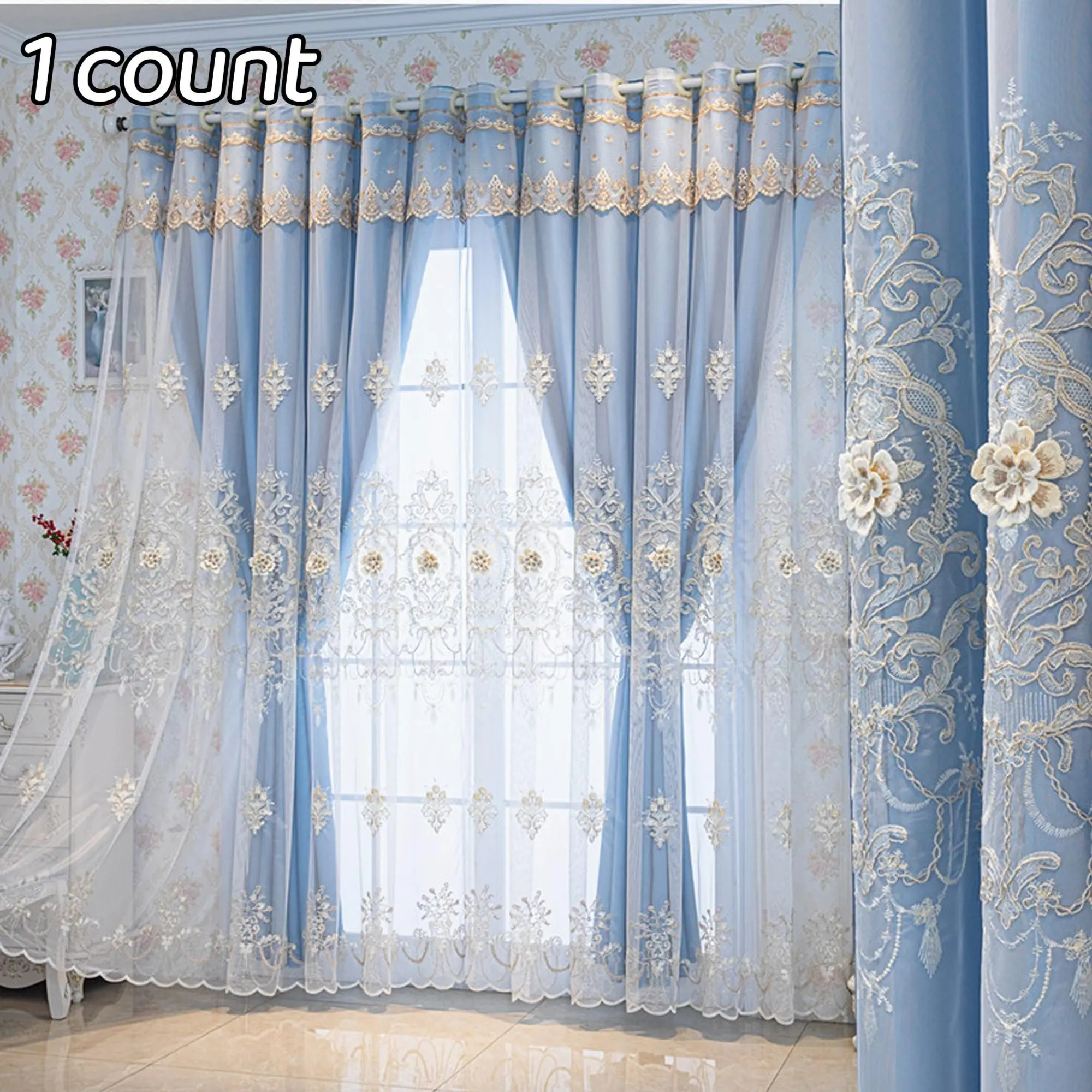 1pc European Luxury Double Layer Ruffled Sheer & Blackout Curtain, Princess Style for Bedroom, Living Room, Kids Room, Home Window Decor