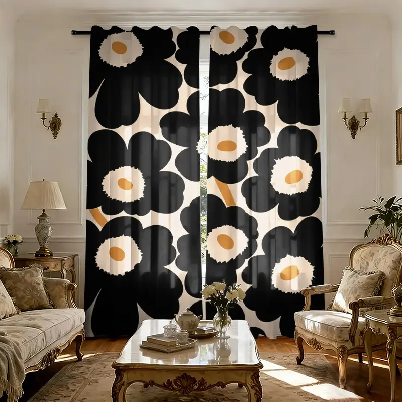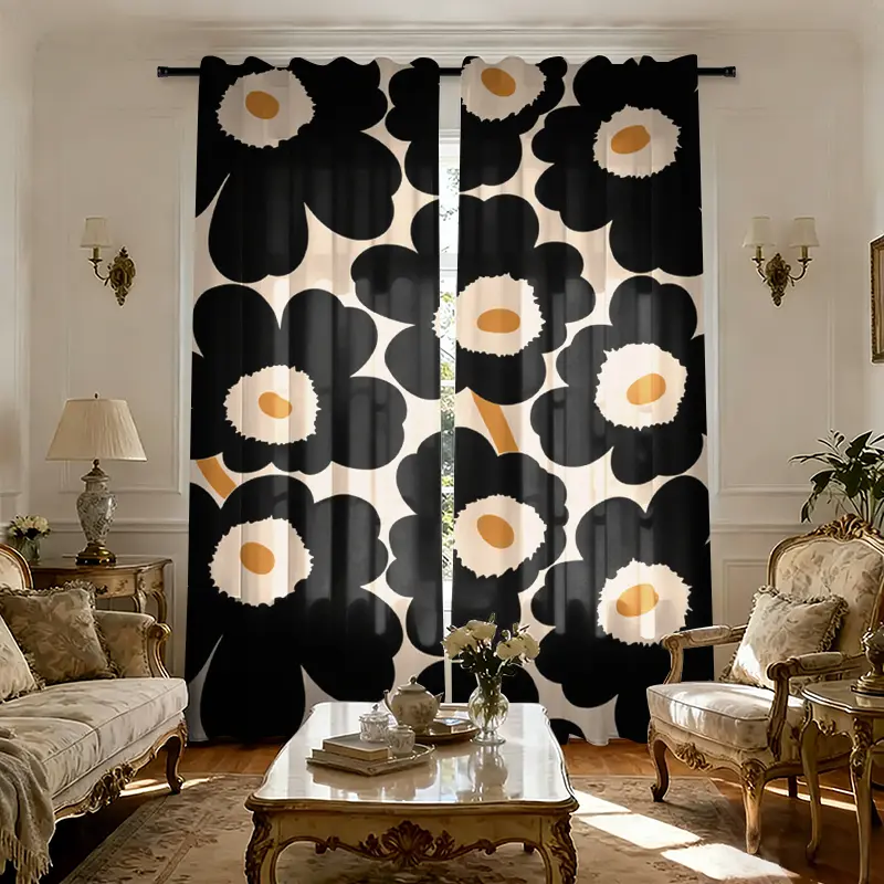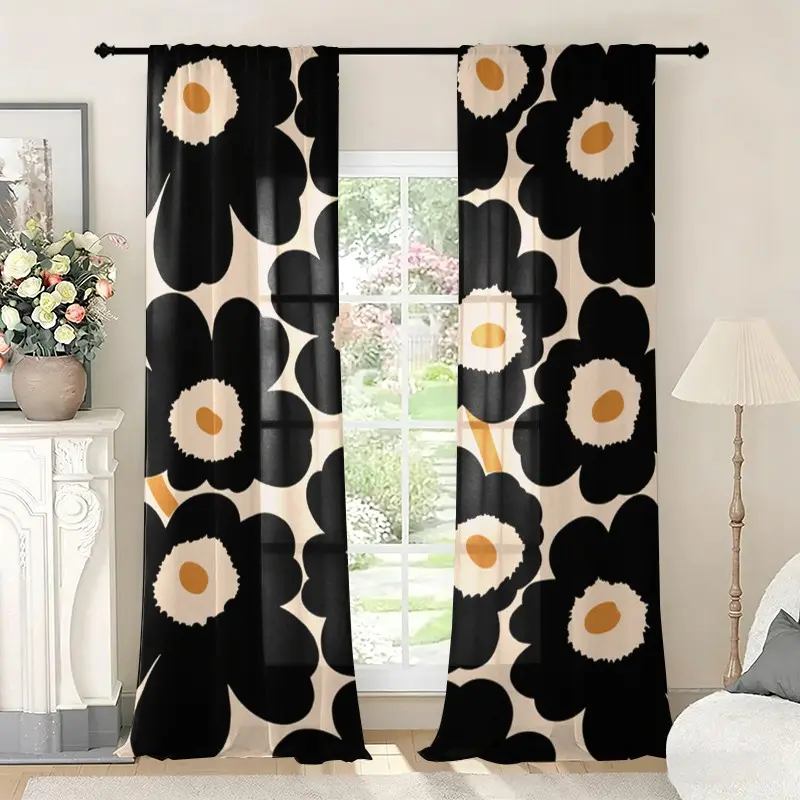 2-piece Spring & Summer Flower Cartoon Print Rod Pocket Curtains, Modern Knit Polyester Curtains, Suitable for Bedroom, Kitchen, Office, Living Room - Machine Washable, Versatile Room Decor, Living Room Curtains