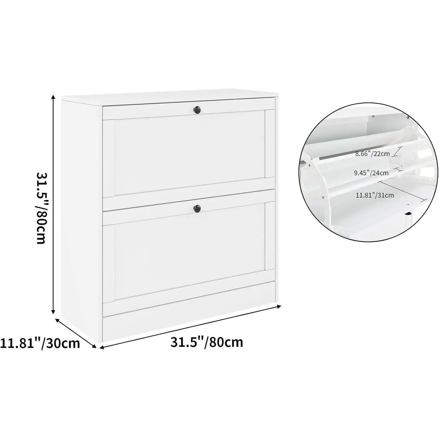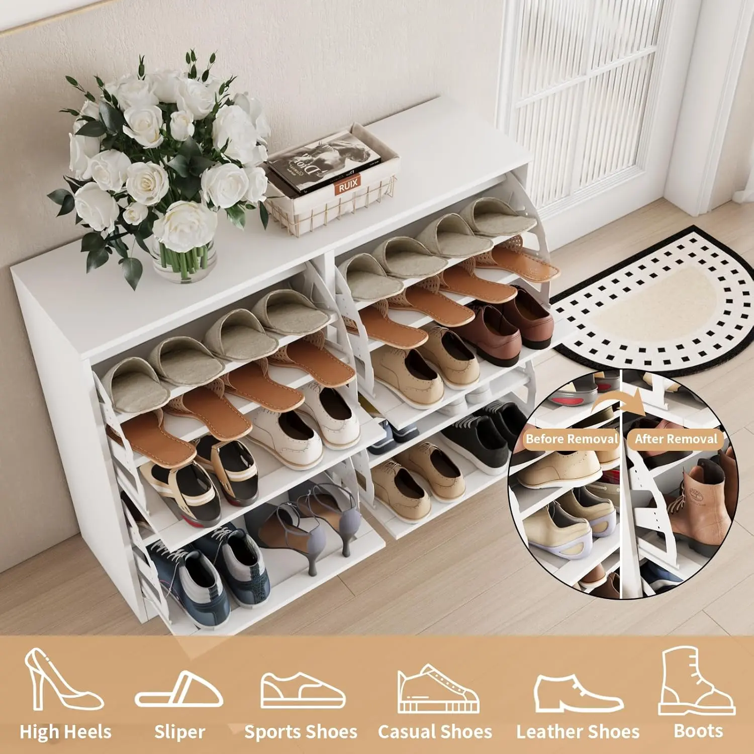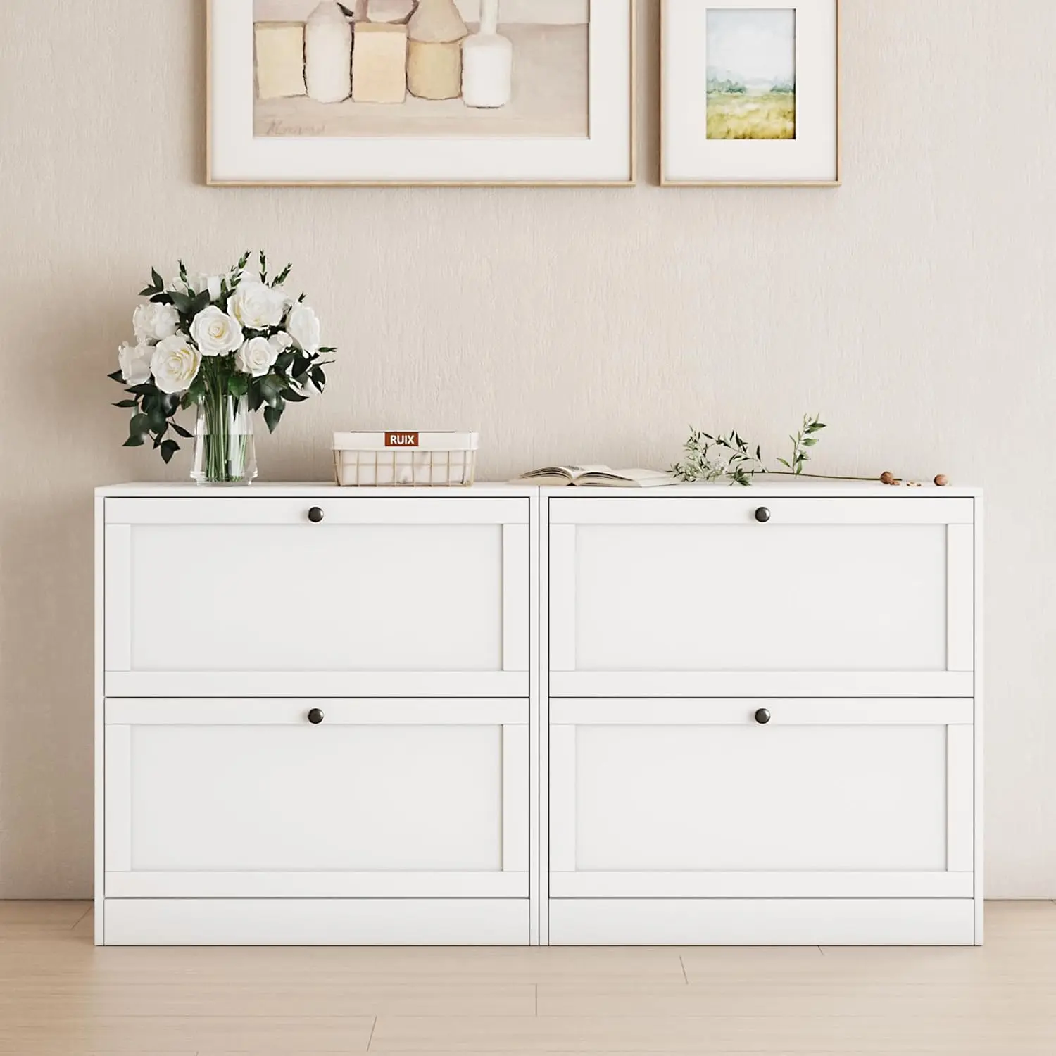 [Modern and Simple Style]The hidden shoe cabinet comes with 2 flip drawers, the white color makes it look neat and beautiful and looks great, it can easily match any type of home style