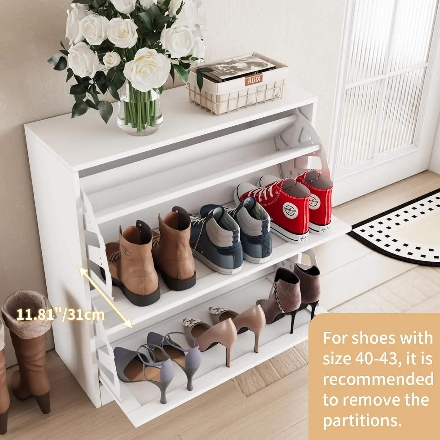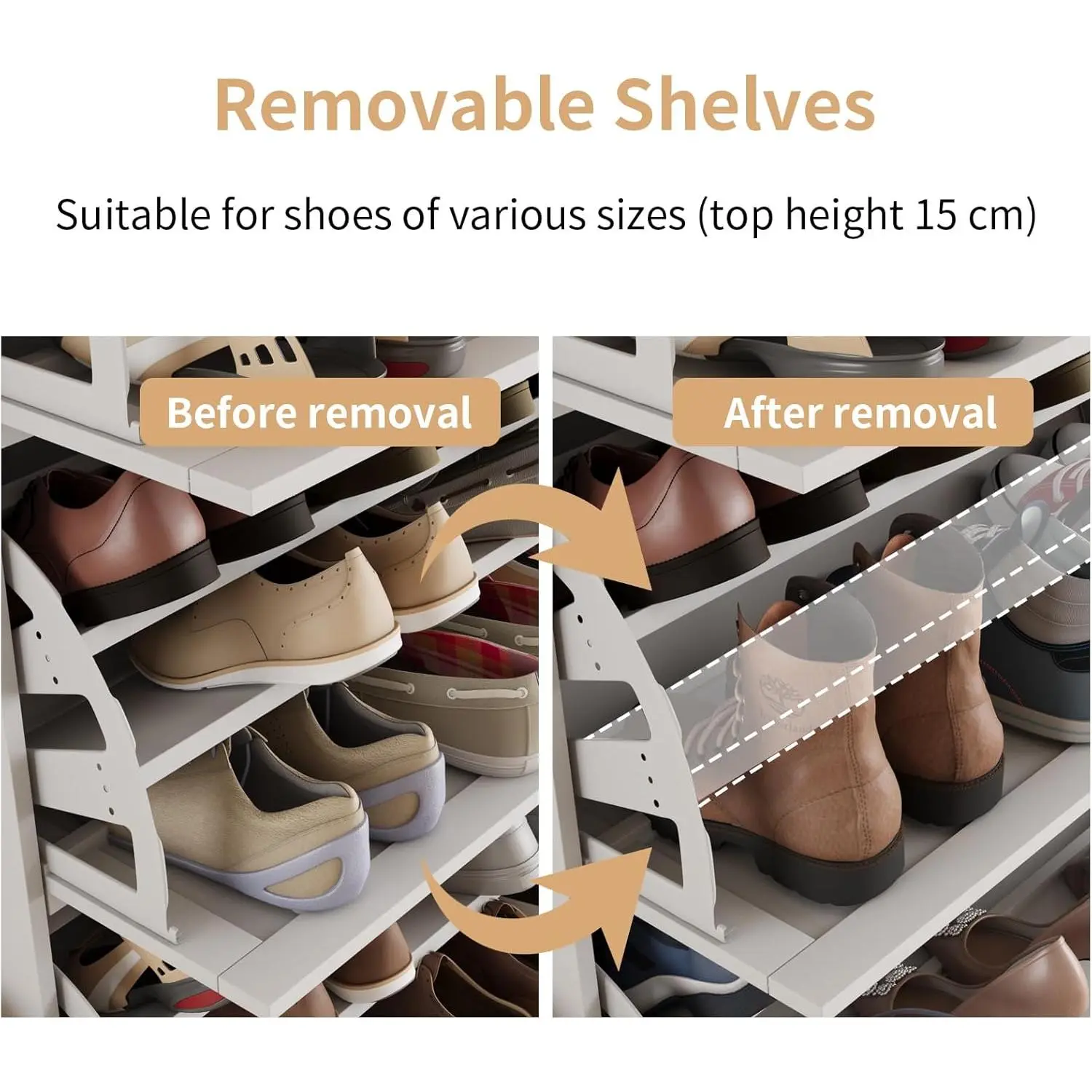 [3-layer Shoe Rack Design]Each flip drawer contains 3 shelves, ensuring more shoe storage space, the width between the shelves can be adjusted according to different shoe sizes to accommodate flat shoes, mid-tube boots or high heels of different heights and sizes
