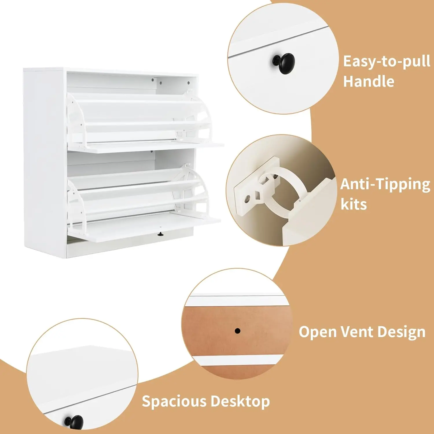 [Safe and Easy to Clean]This ultra-thin shoe cabinet is equipped with an anti-tipping device, which can be fixed to the wall to prevent tipping and protect the safety of children.This shoe cabinet adopts durable particle board with a smooth surface and stable structure to ensure super load-bearing capacity