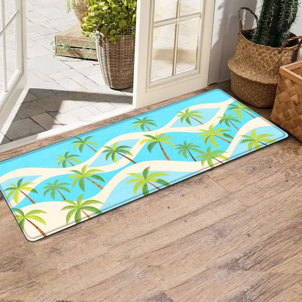 1PC, Spring Coconut Tree Beach Scene Patterned strip rugs, home décor, bathroom mats, entryway mats, bathroom non-slip mats, indoor entrance rugs, bedroom bedside mats, kitchen mats, hallway rugs, flannel sponge rugs, hallway runner rugs