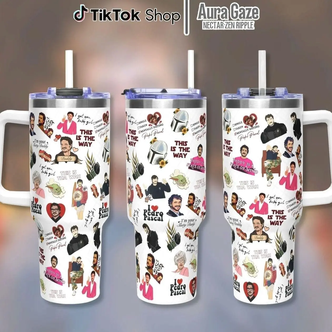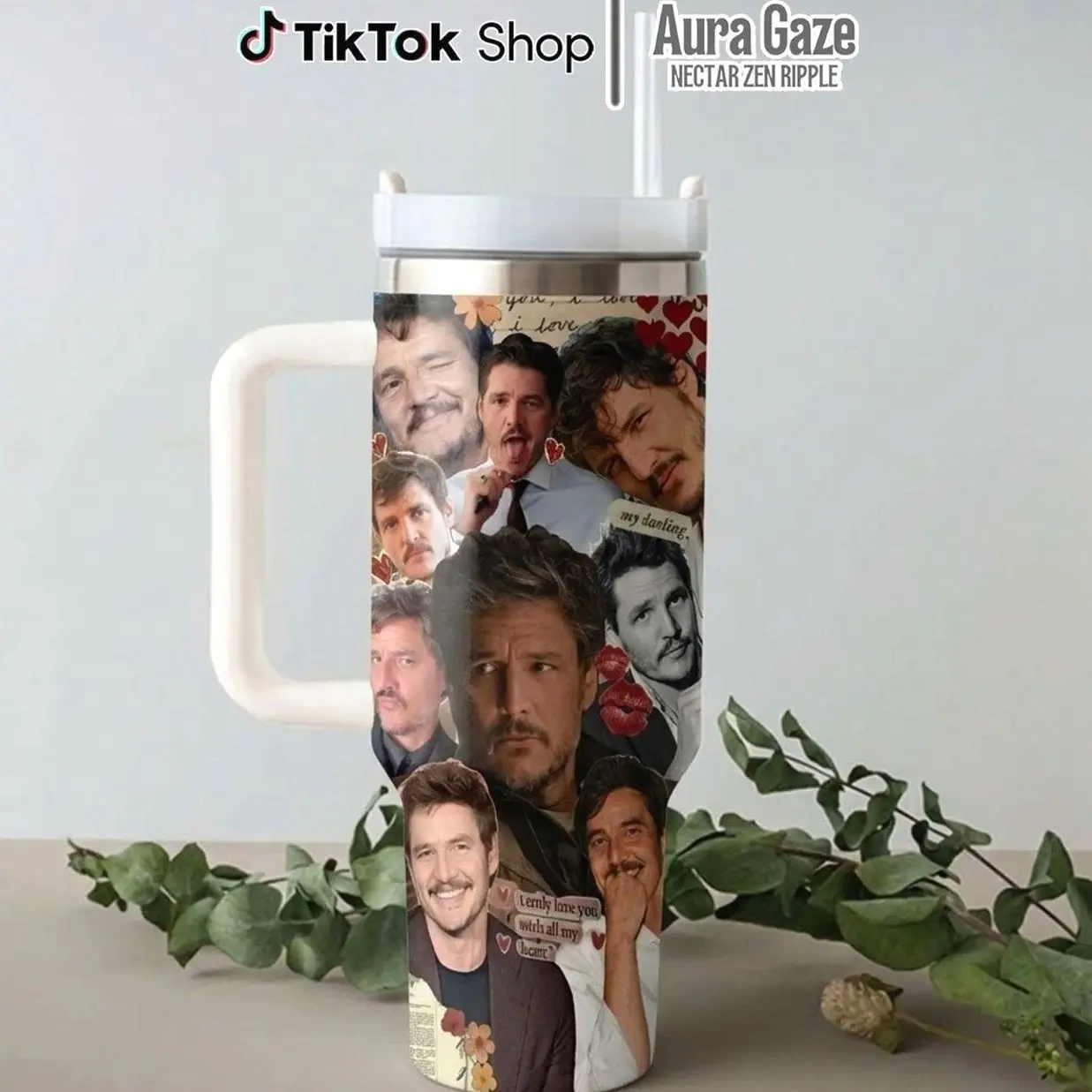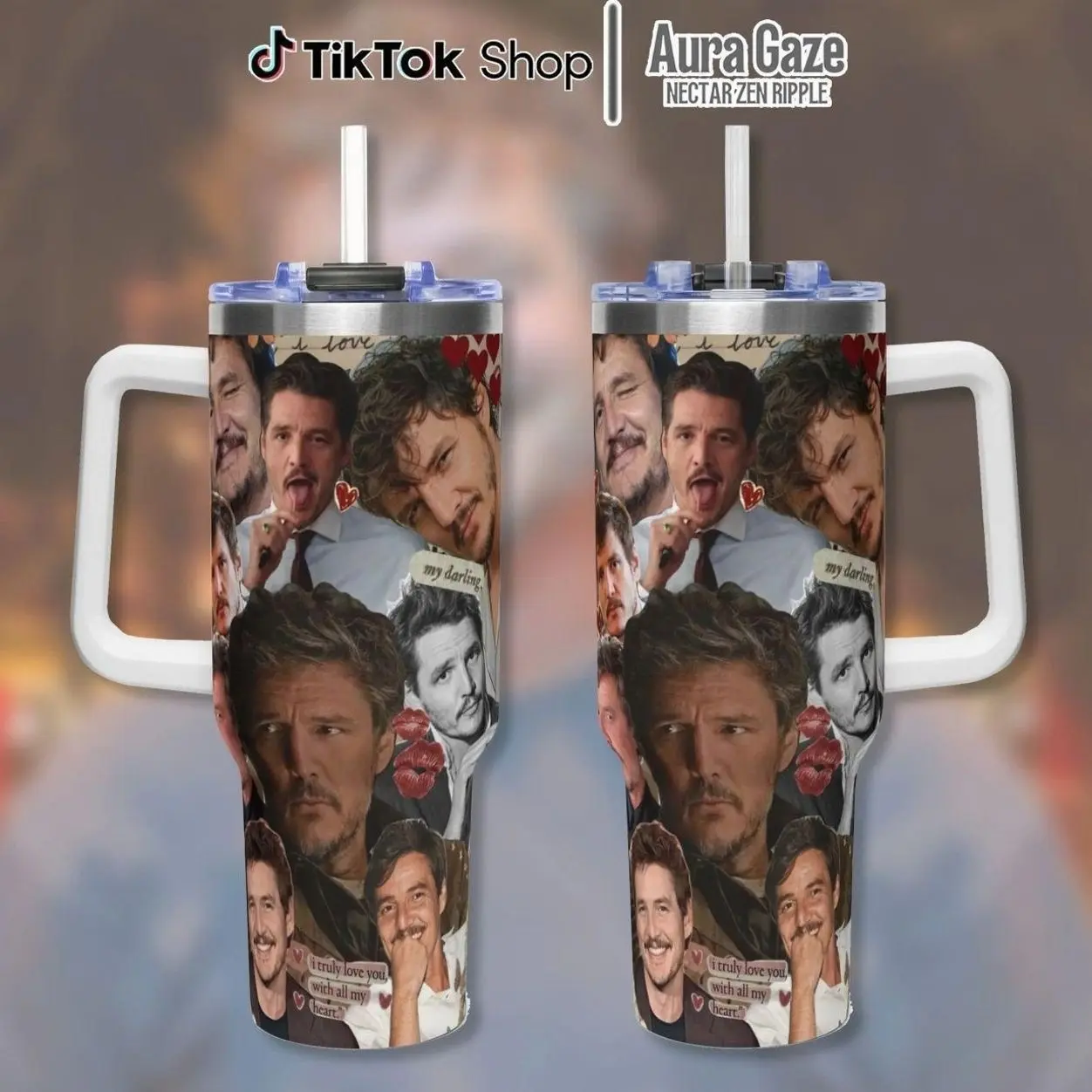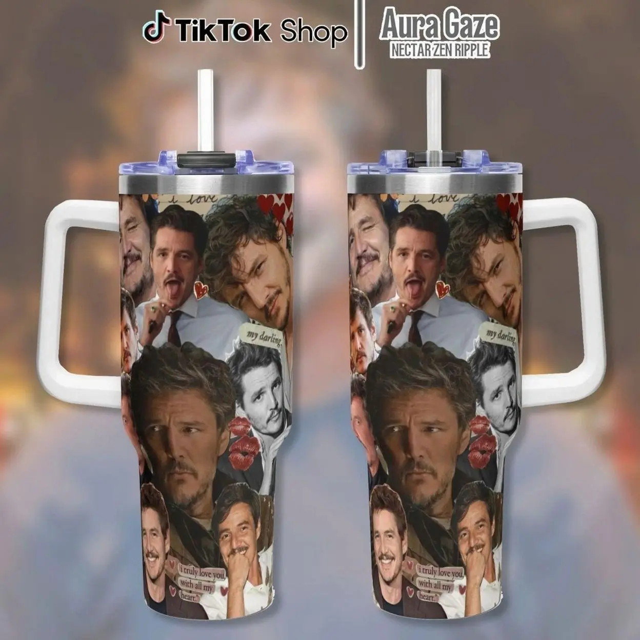 Pedro Pascal Tumbler 40oz – Pedro Pascal Coffee Cup, Celebrity Crush Gift, Gift For Fan, 40oz Tumbler With Handle