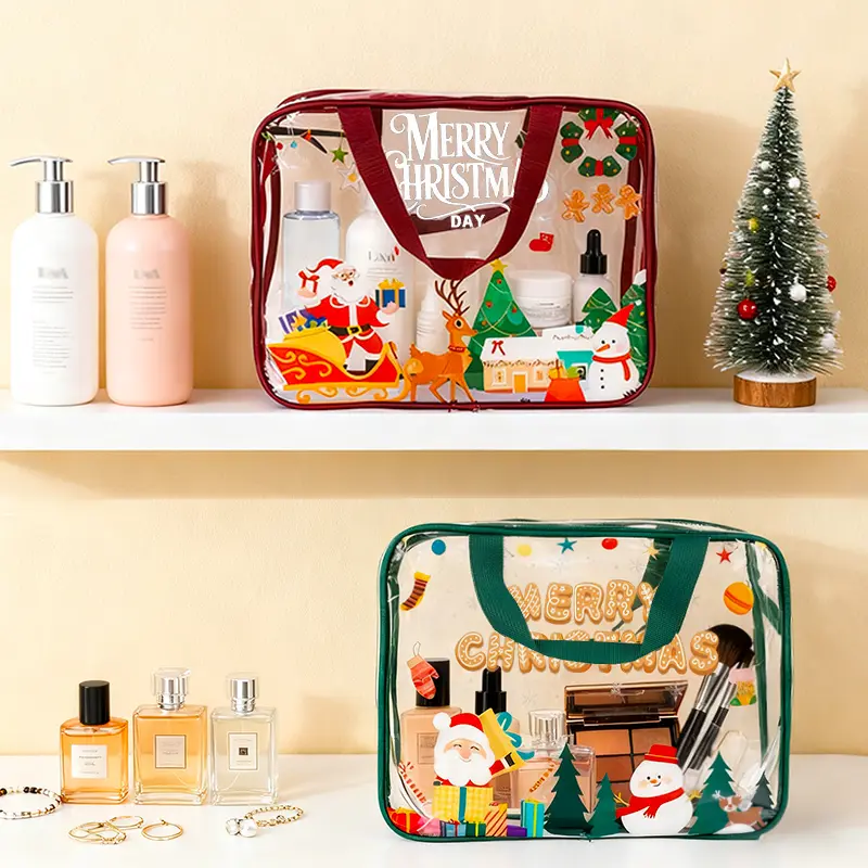 Christmas Desk Organizer, Desktop Storage Pouch with Holiday Patterns for Office Supplies, Makeup, Pens | Festive Gift for Women, Teens, Coworkers