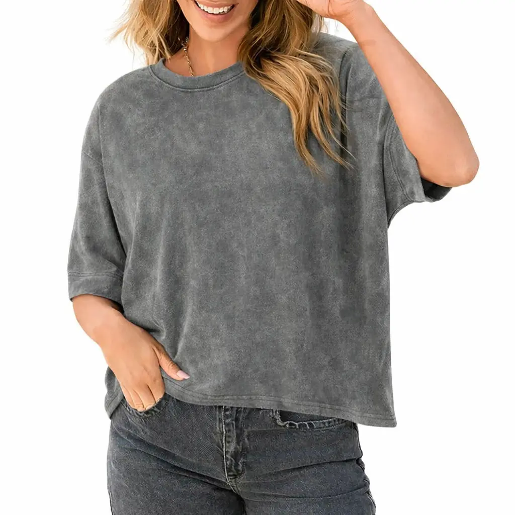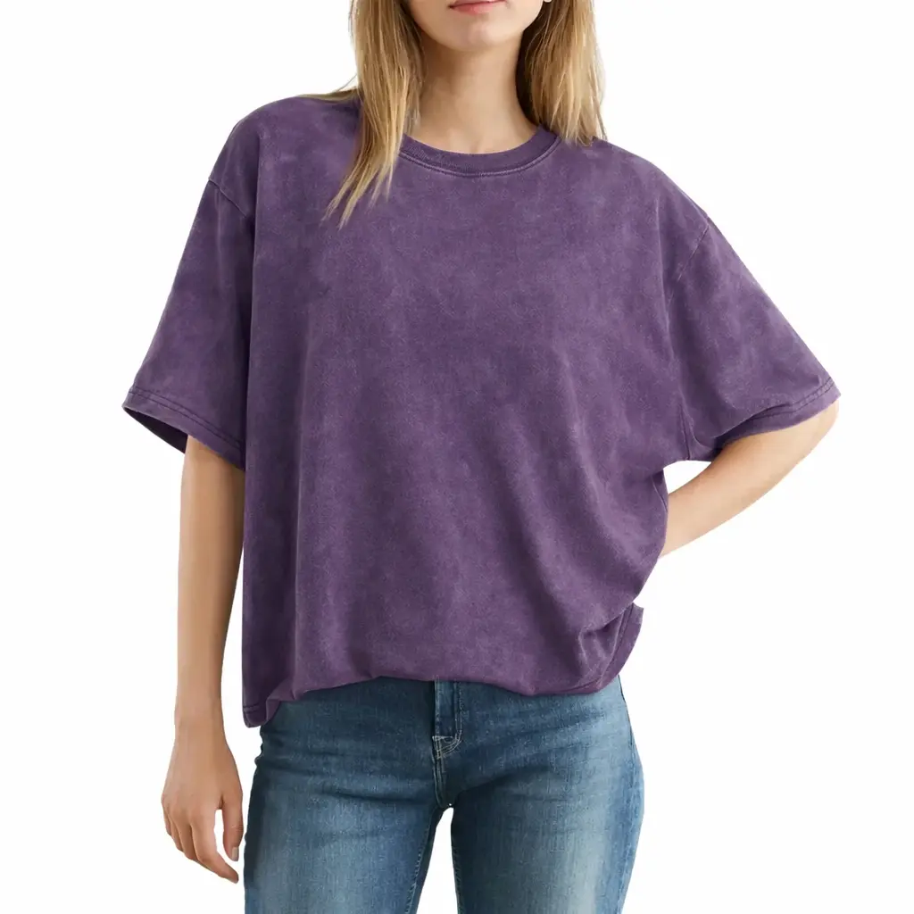 Women’s Tops for Women 2026 Loose Oversized Basic Tee Comfortable Soft Fabric Flattering Fit Womenswear Vintage Washed Purple T-Shirt Acid Wash Crew Neck Short Sleeve Casual Streetwear Soft Cotton Blend Solid Color Minimalist Style