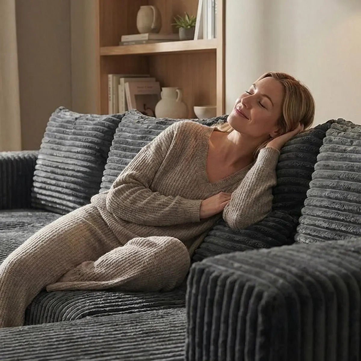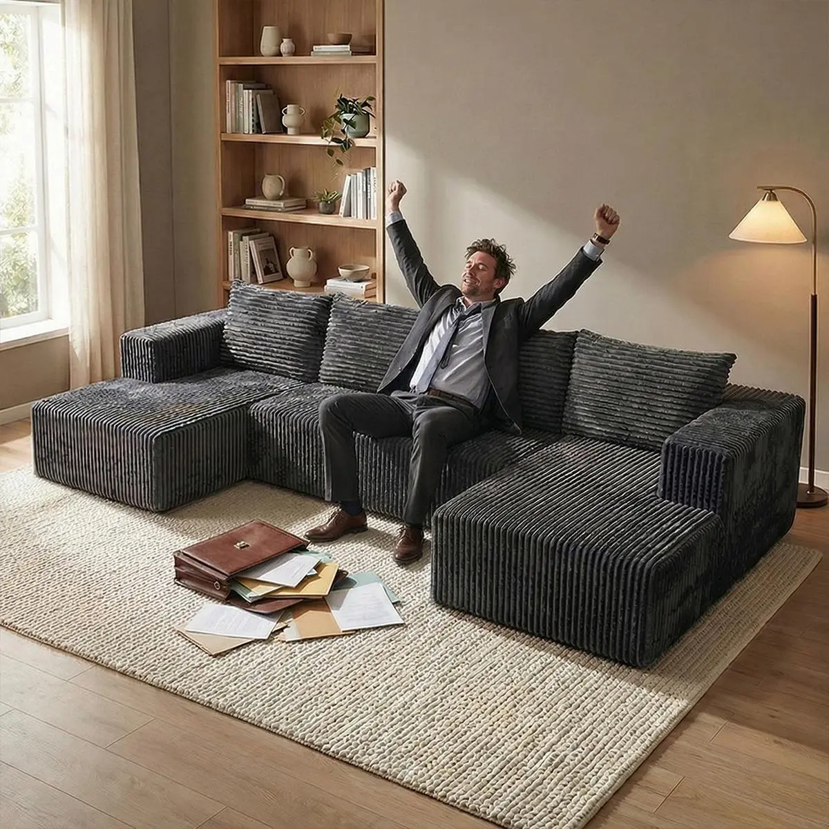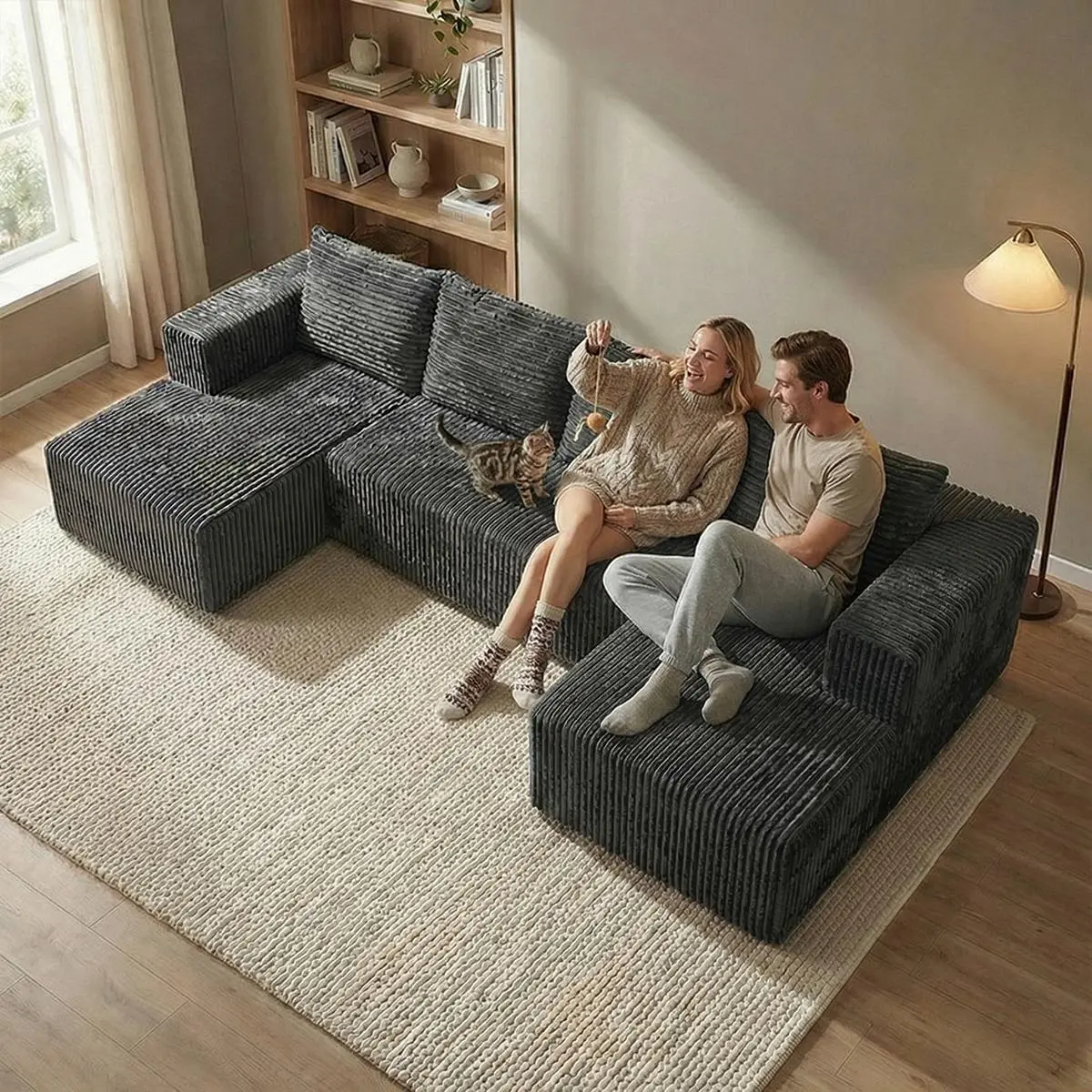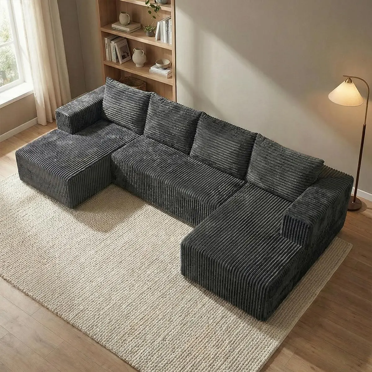 Oversized U-shaped boneless sofa with modular design for free combination, providing a deep sense of coverage and comfortable cloud corduroy fabric; Modern minimalism, no need for assembly; Suitable for living rooms, bedrooms, and other occasions