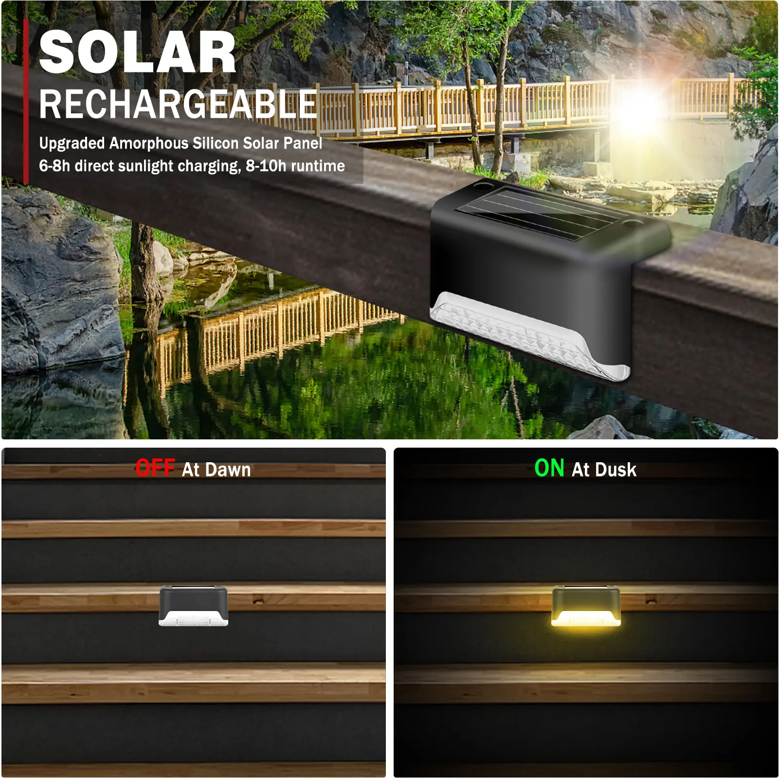 Our solar deck lights are equipped with a built-in smart light sensor that automatically turns on at dusk and off at dawn, providing you with truly hands-free operation and energy-saving performance.
