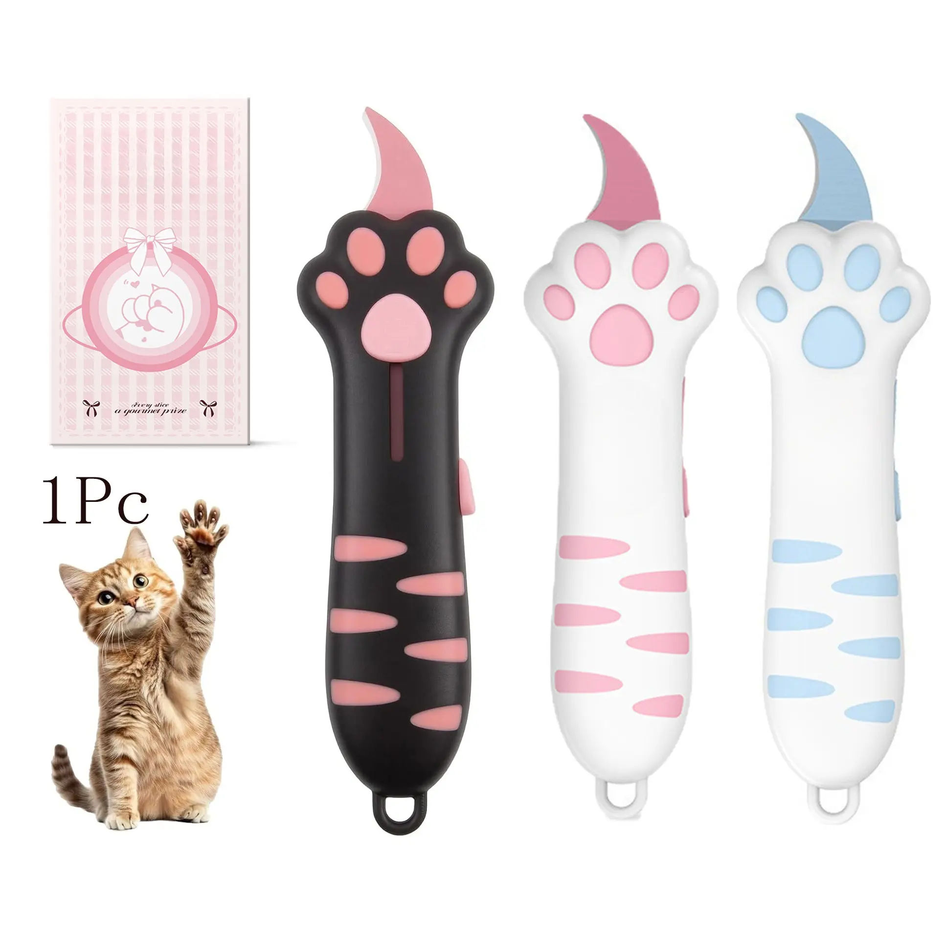 2026 New Extendable Cat Claw Knife, Cute Cat Shape Unboxer, Portable Pet Lover Tool, Multi-Functional Utility Knife for Boxes and Seals