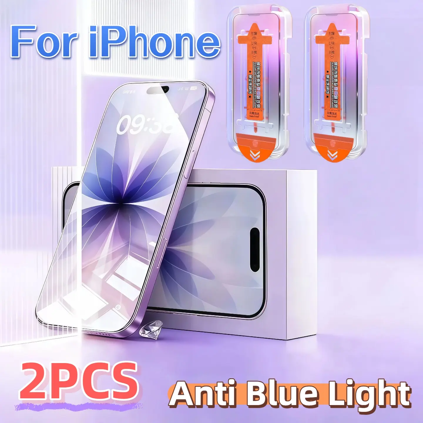 2-Pack Anti-Blue Light Tempered Glass Screen Protector for iPhone 17 16 15 14 13 12 11 Pro Max, Full Coverage, 9h Hardness, Bubble-Free