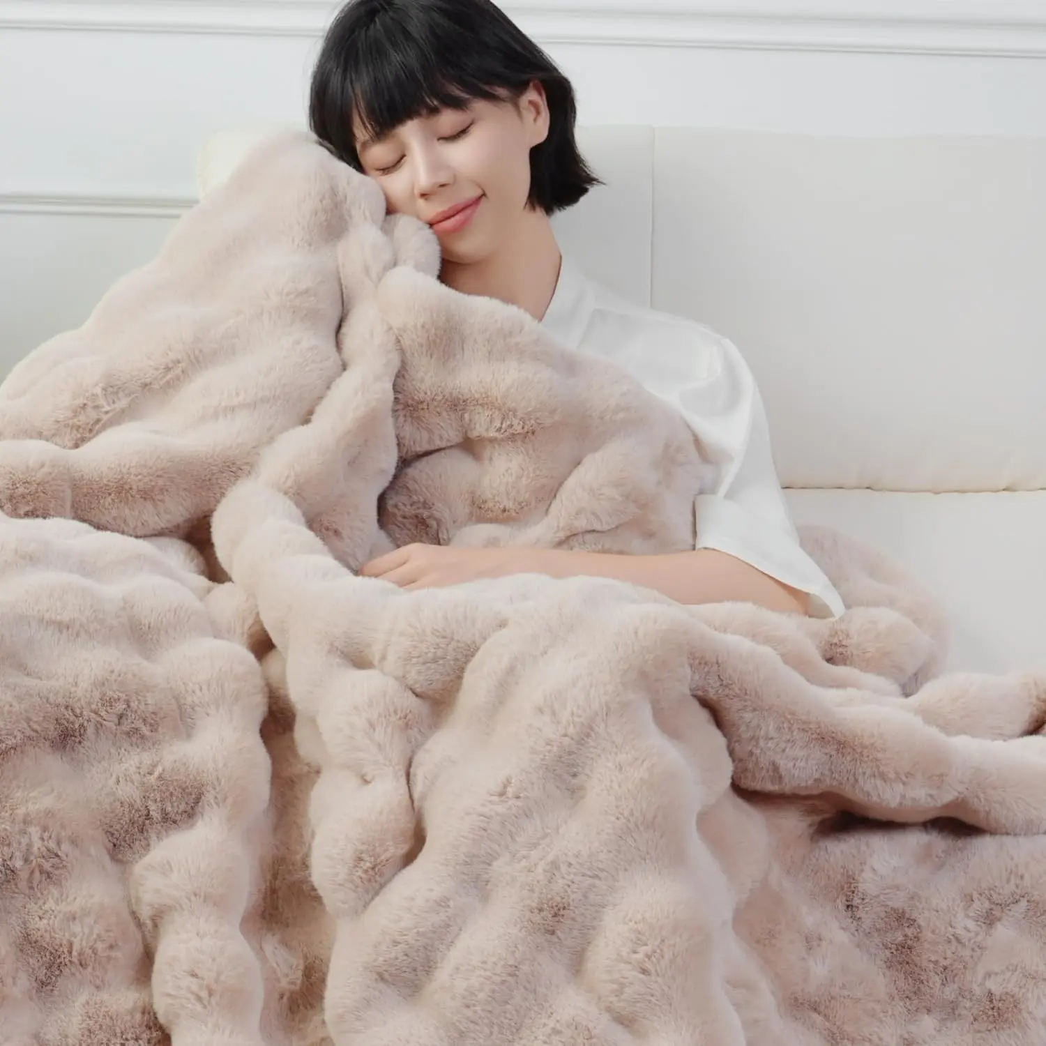MACINSO Bubble Blanket with Storage Bag Soft Comfortable Throw Blanket Cozy Warm Napping for Home Office Travel Camping Global Picks