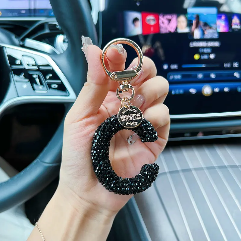 ·✨ Personalized 3D Letter Design: Bold letter K fully encrusted with sparkling black rhinestones, crafted from durable clay, delivering a sleek, custom aesthetic that’s viral on TikTok personalized accessory trends.