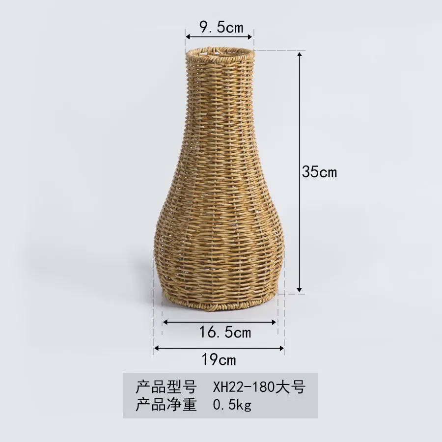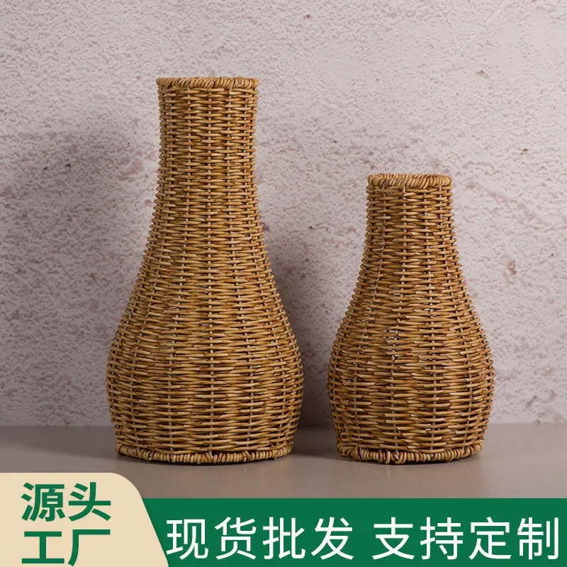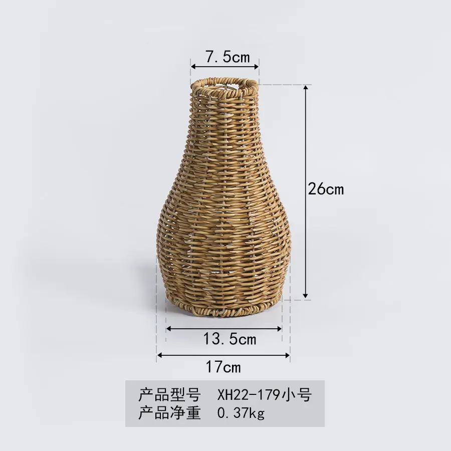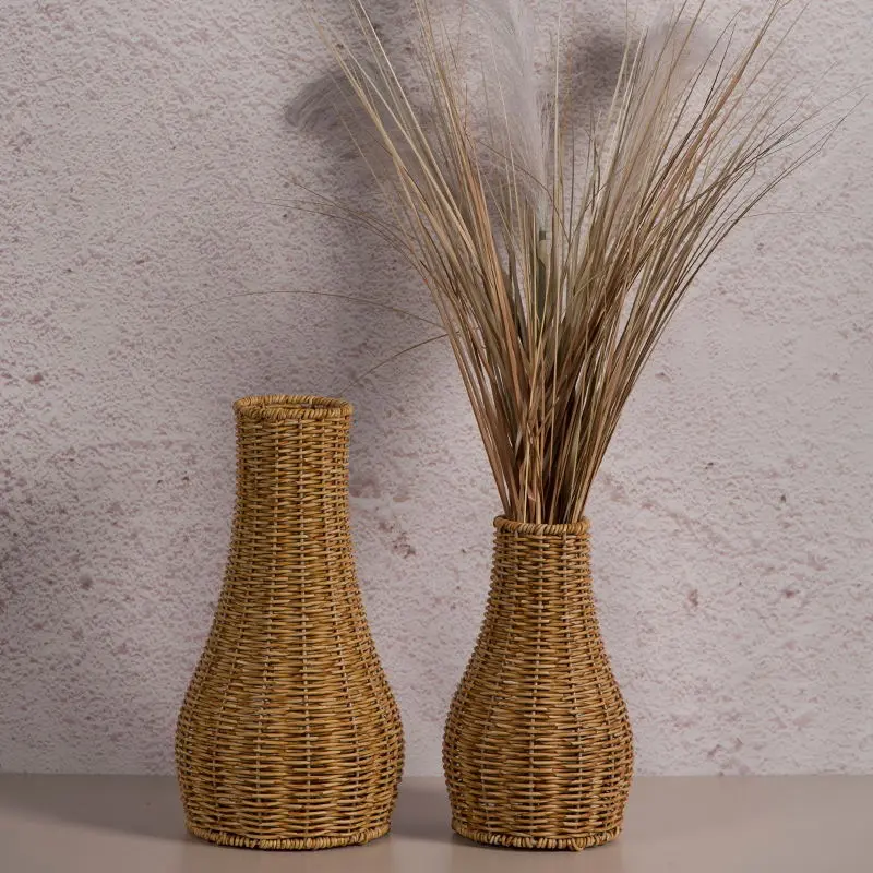 Handwoven Vintage Rattan-Look Floor Vase, Minimalist Home Decor for Living Room & Balcony, Decorative Flower Cylinder for Tabletop