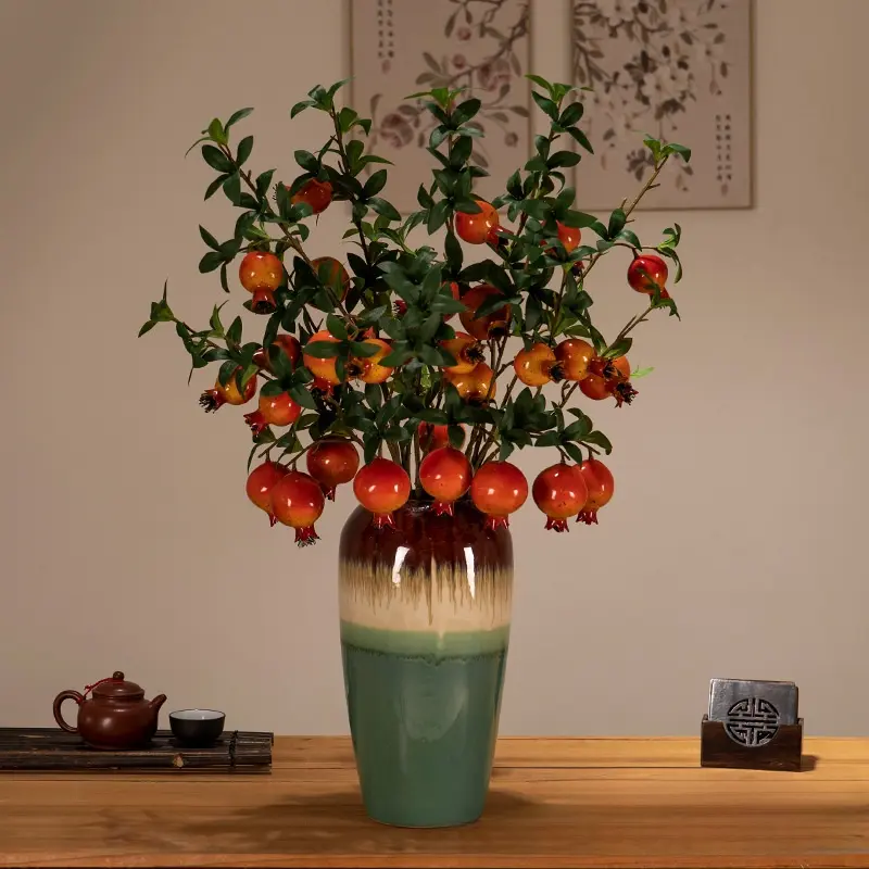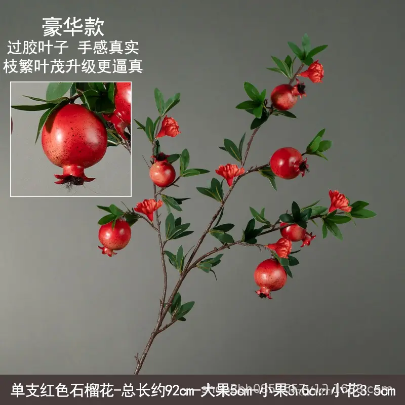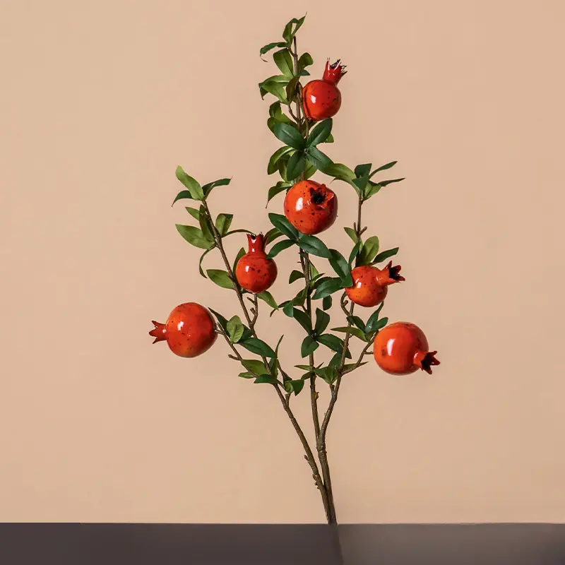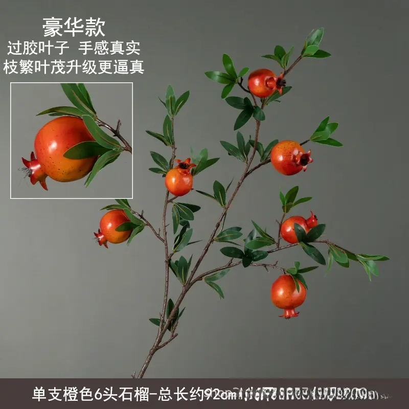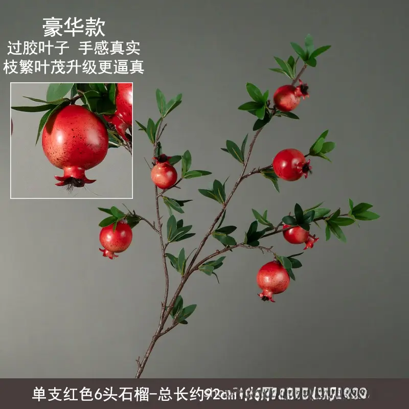 Artificial flower 6-headed pomegranate branch with pomegranate fruit ornament for housewarming, New Year's decoration, home living room floor decoration
