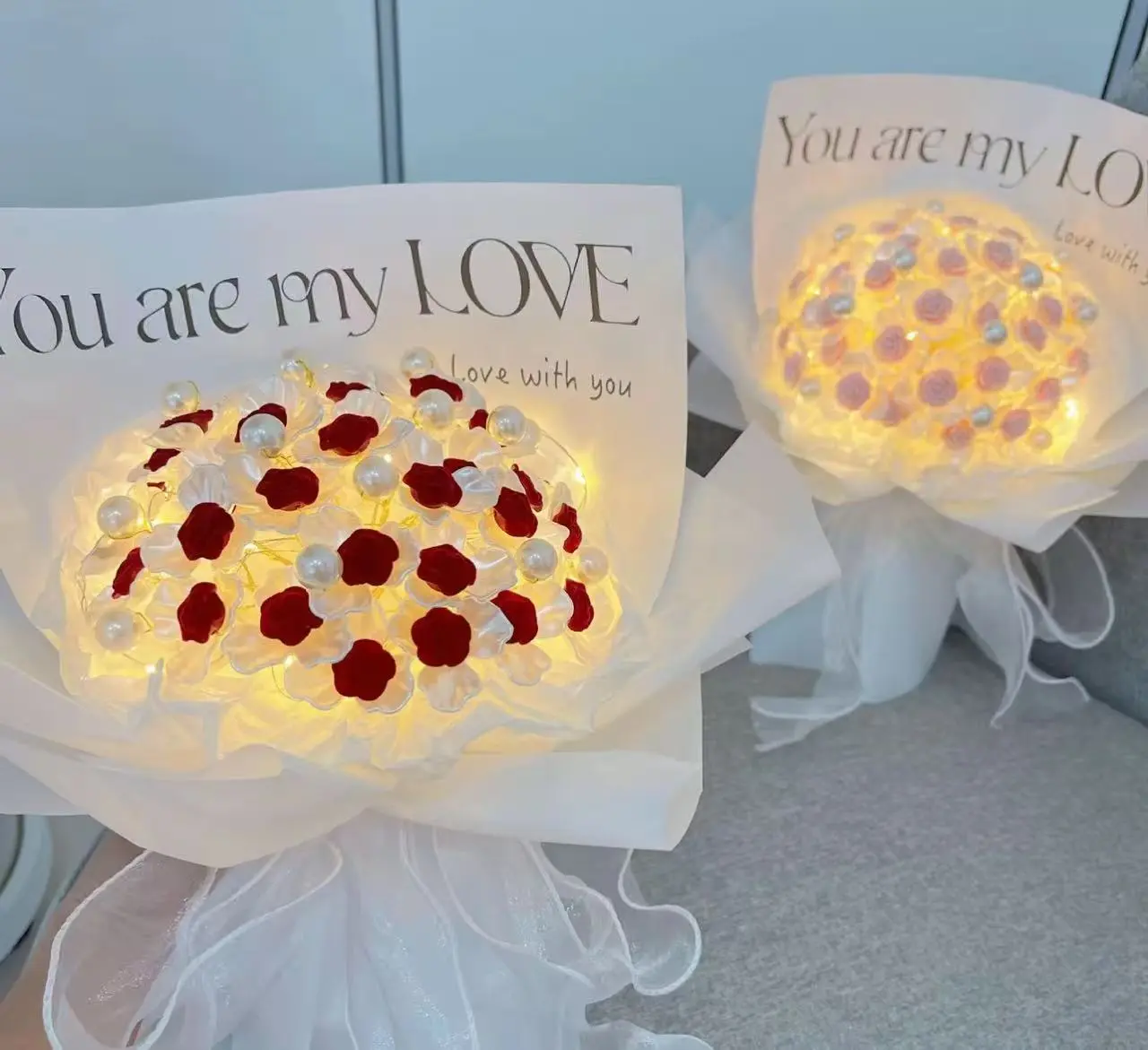 Handmade faux pearl acrylic petal rose bouquet, a floral gift of eternal love, a gift for her, romantic home decoration for Valentine's Day 2026