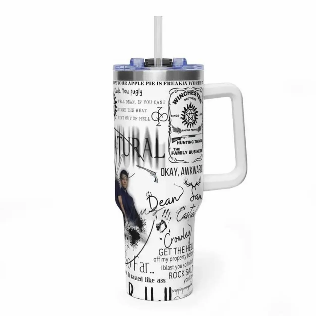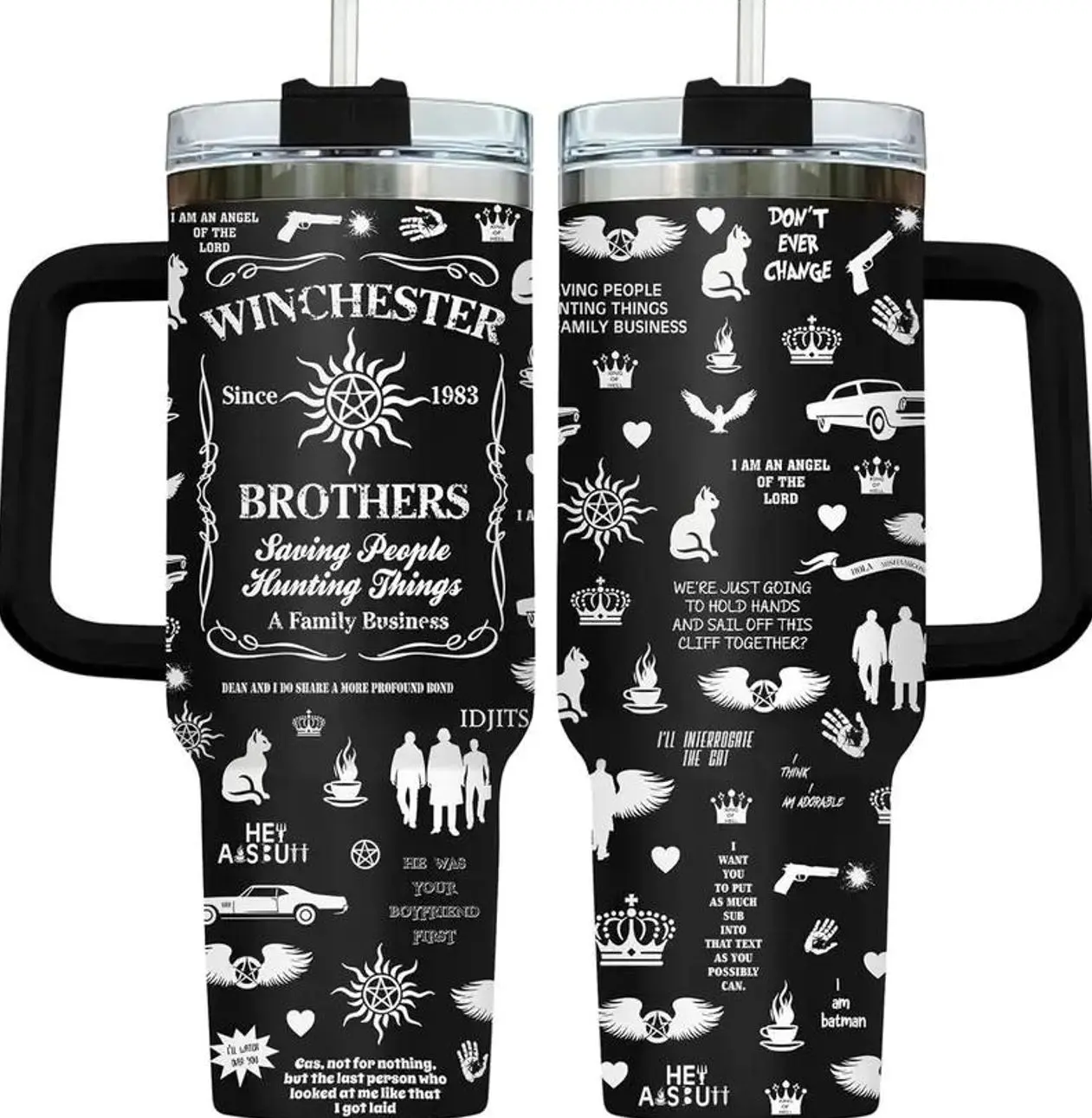 Winchester Tumbler - Super natural Inspired - 40oz Black/White Tumbler, Movie Fan Gift Cup