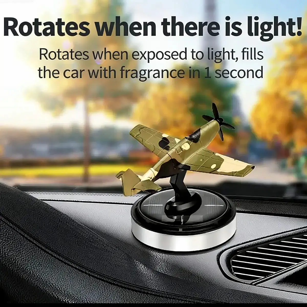 Solar P-51 Mustang Fighter Car Air Freshener Rotates in Sunlight Removes Odors Long Lasting Fragrance Car Ornament