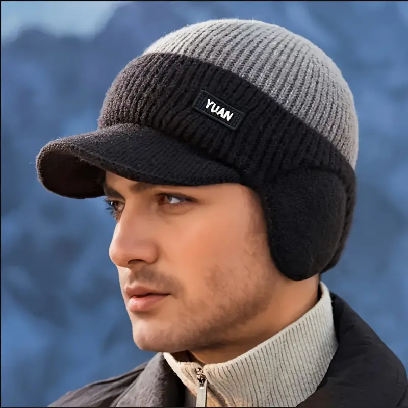 Men's Winter Ear Warmer Hat, Fleece Lined Thick Warm Knit Cap, Knitted Hat, Windproof Cycling Beanie, Cold Weather Headwear, Sports Hat, Outdoor Protection