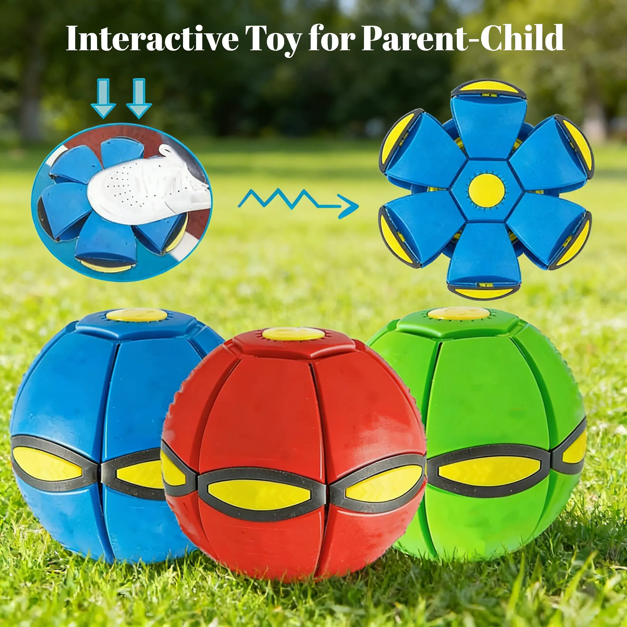 Magic UFO Deformable Flying Saucer Ball, 2-in-1 LED Light Up Throw Catch Ball, Portable Outdoor Garden Beach Toy, Interactive Pet Dog Toy, Fun Sports Game for Kids, Family, Backyard, Camping, Birthday Gift