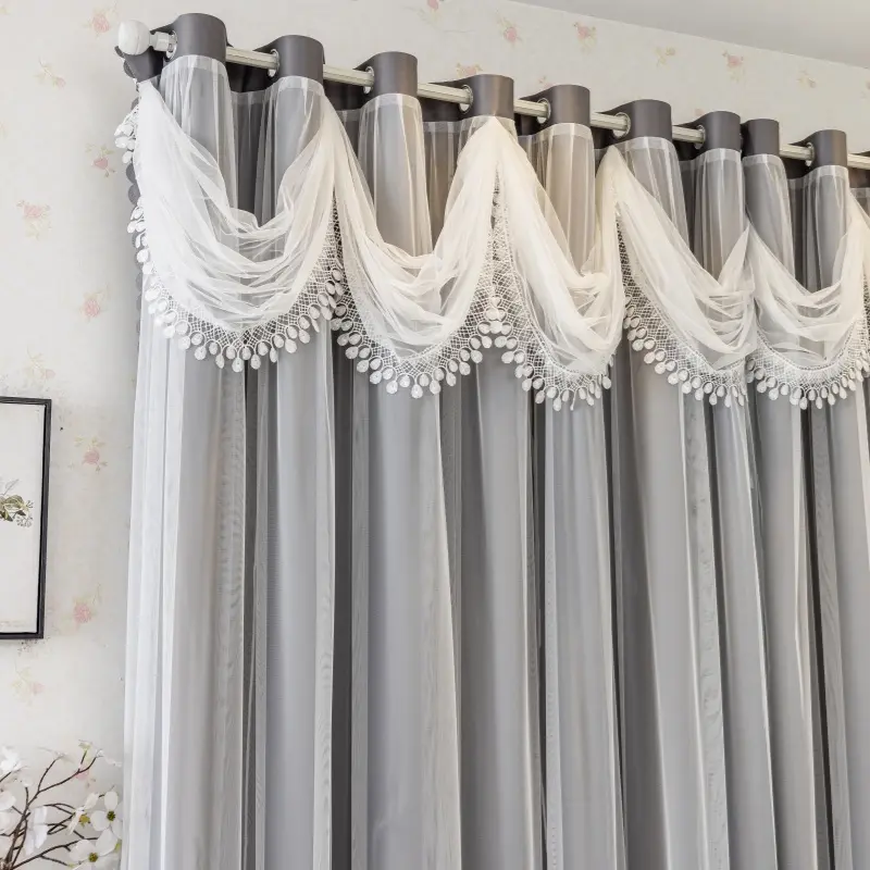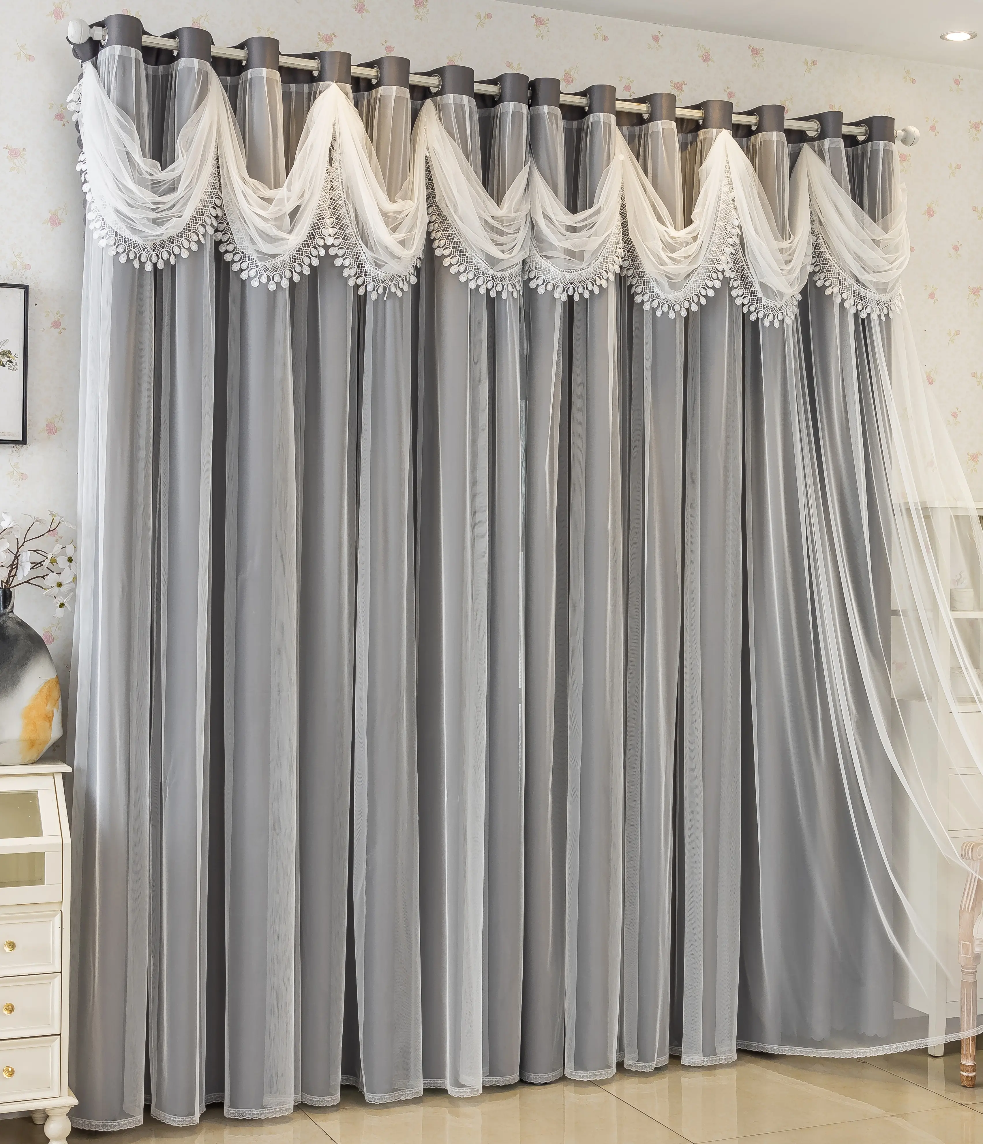 2PCS European vintage embroidered lace semi-transparent curtains, dual-layer design, perfect for living room and bedroom decor