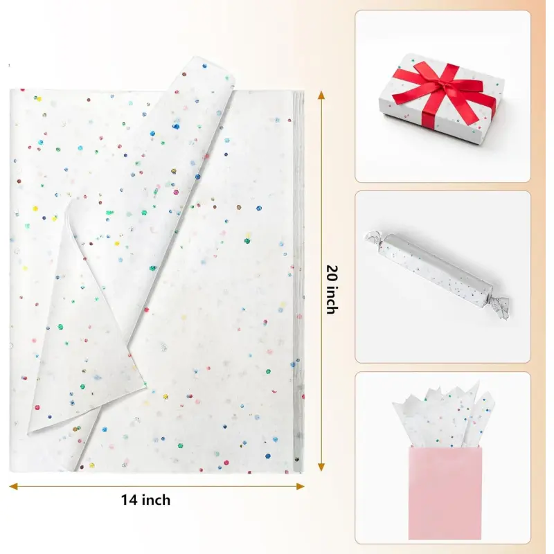 Special Glitter Look: These tissue paper with a sparkle glitter on the look.The color is elegant, suitable for any themed party, and make your artistic packaging more eye-catching