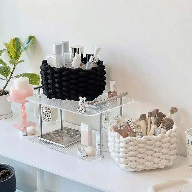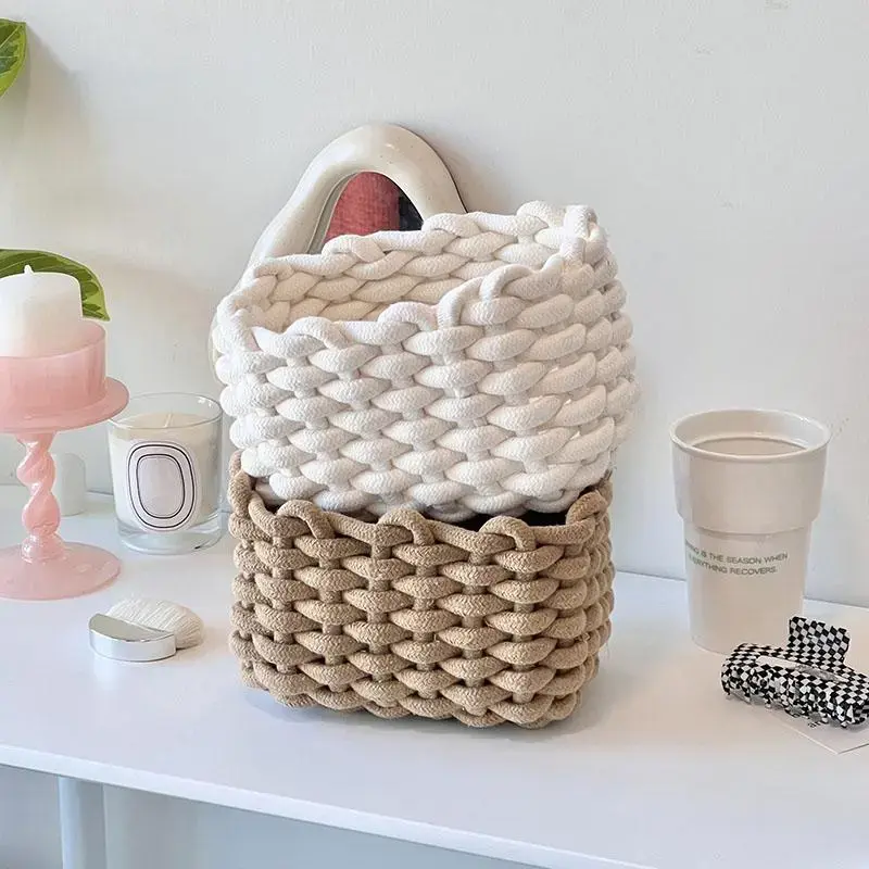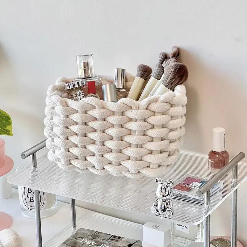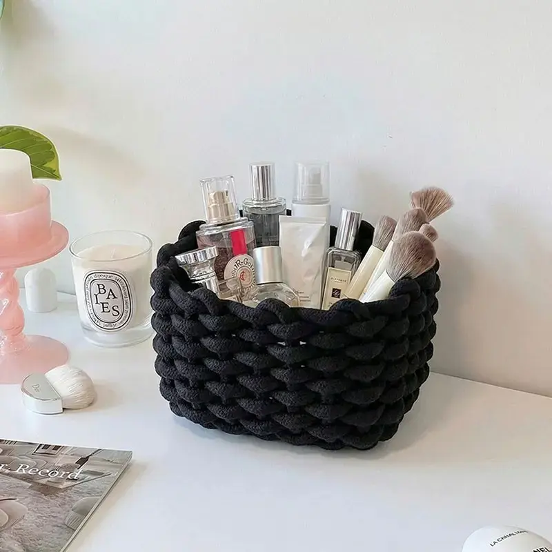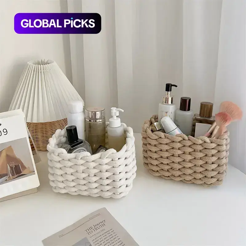 Woven Storage Basket, Portable Handmade Desktop Cosmetics Organizing Basket, Toiletries Basket, Home Organizer for Living Room and Bedroom #GLOBAL PICKS