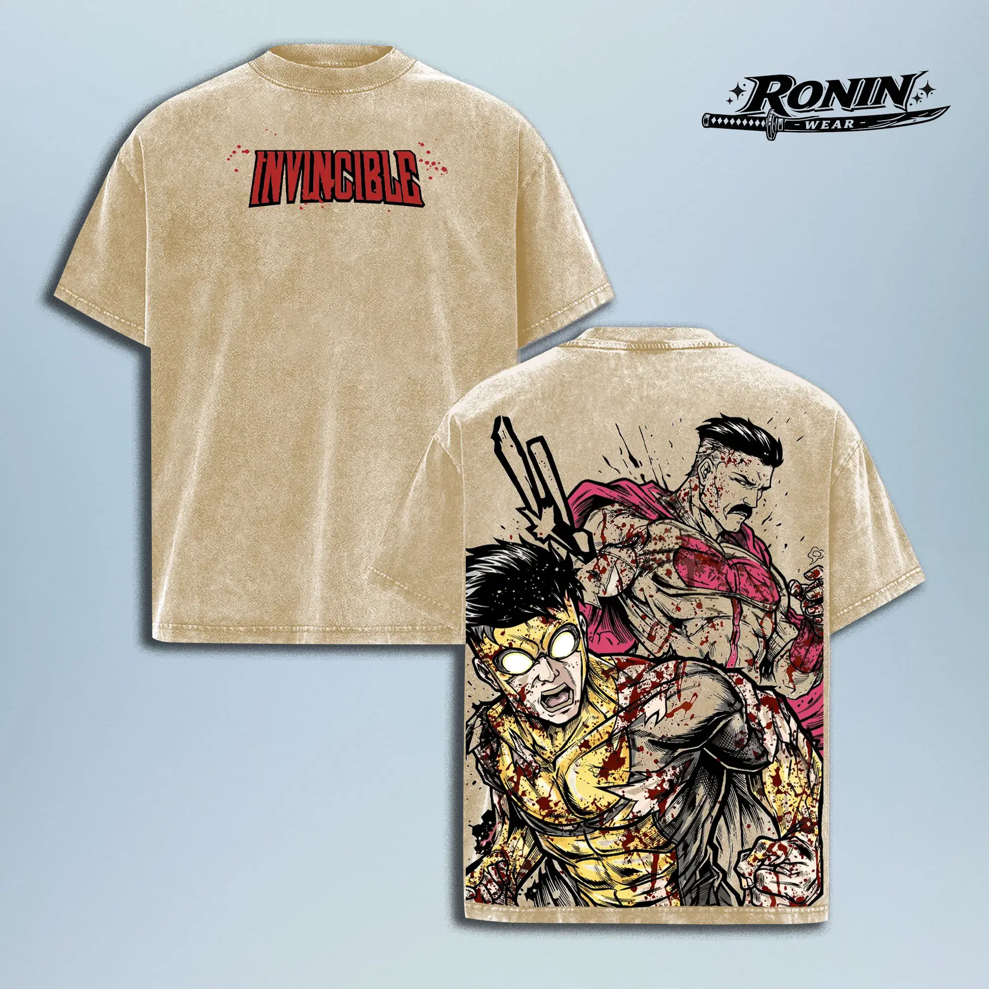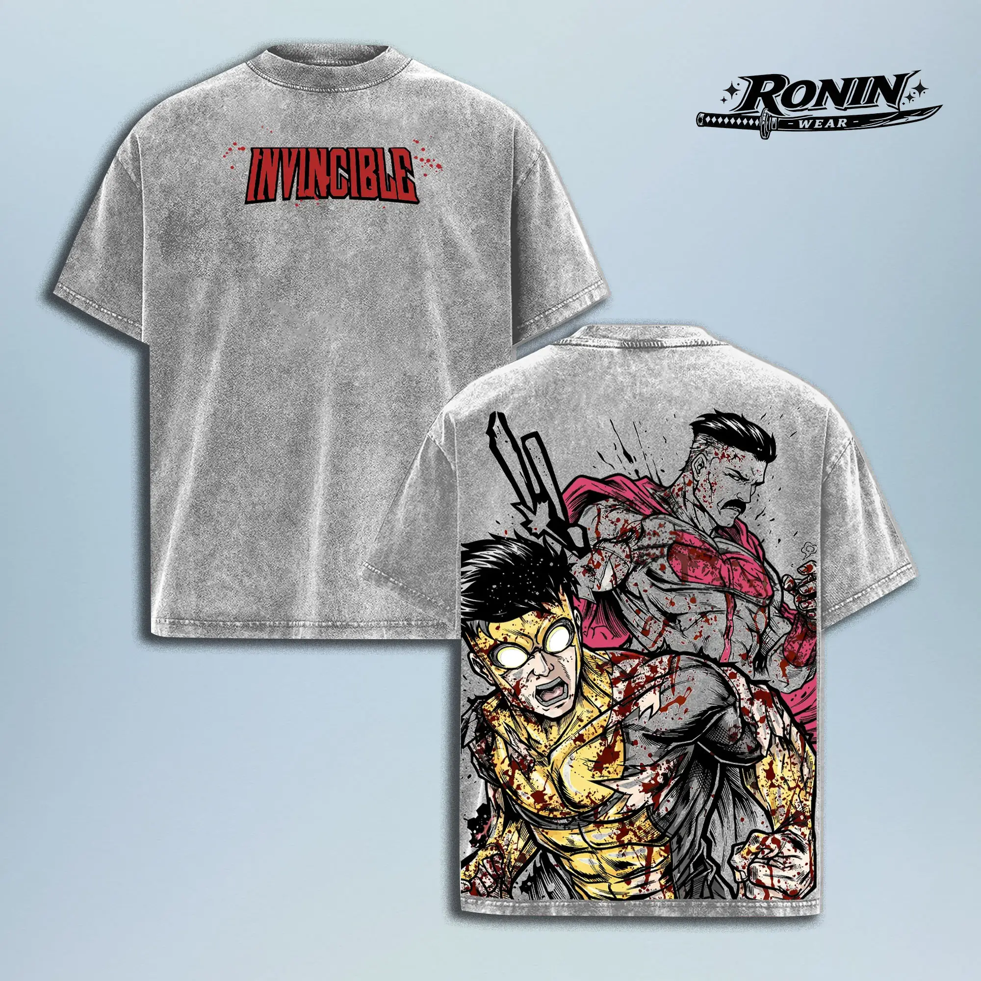 Invincible Omni Man Vs Mark Grayson Brutal Fight Game | Vintage Washed Graphic Tee | Oversized Heavyweight Game Shirt | Large Back Graphic Streetwear | High-Quality Cotton Fabric | Unisex | Game Merch | Gift For Gamers | Year-Round Casual Wear