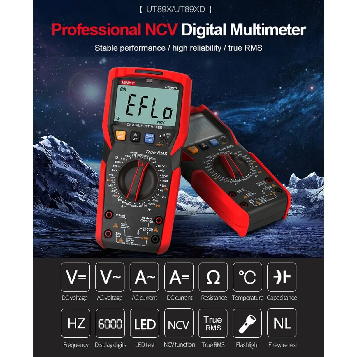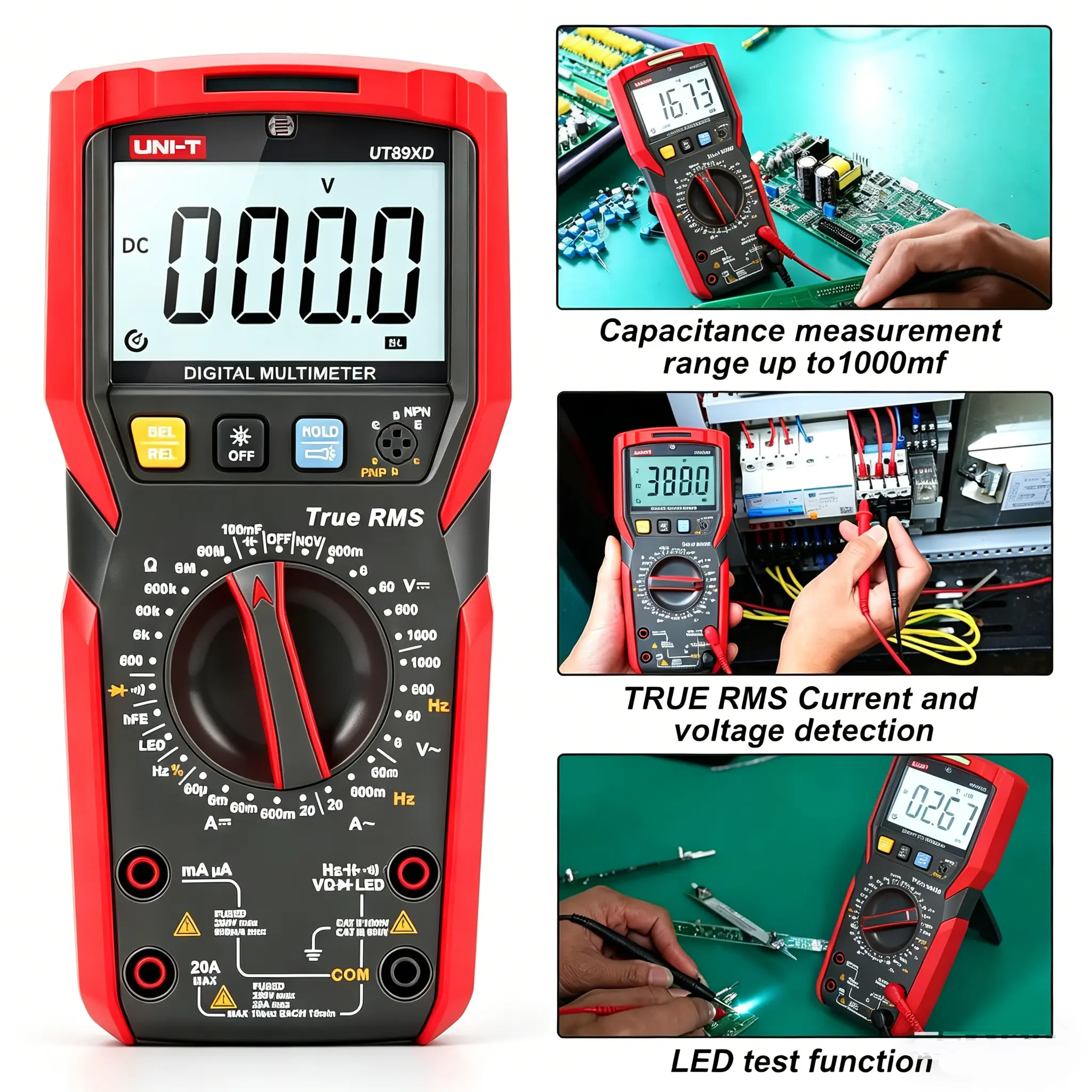 Equipped with True RMS technology, this Digital Multimeter Tester ensures accurate readings for complex signals. Features include diode and transistor testing, continuity test, frequency response (45–1kHz), and NCV detection with audible and visual alarm.