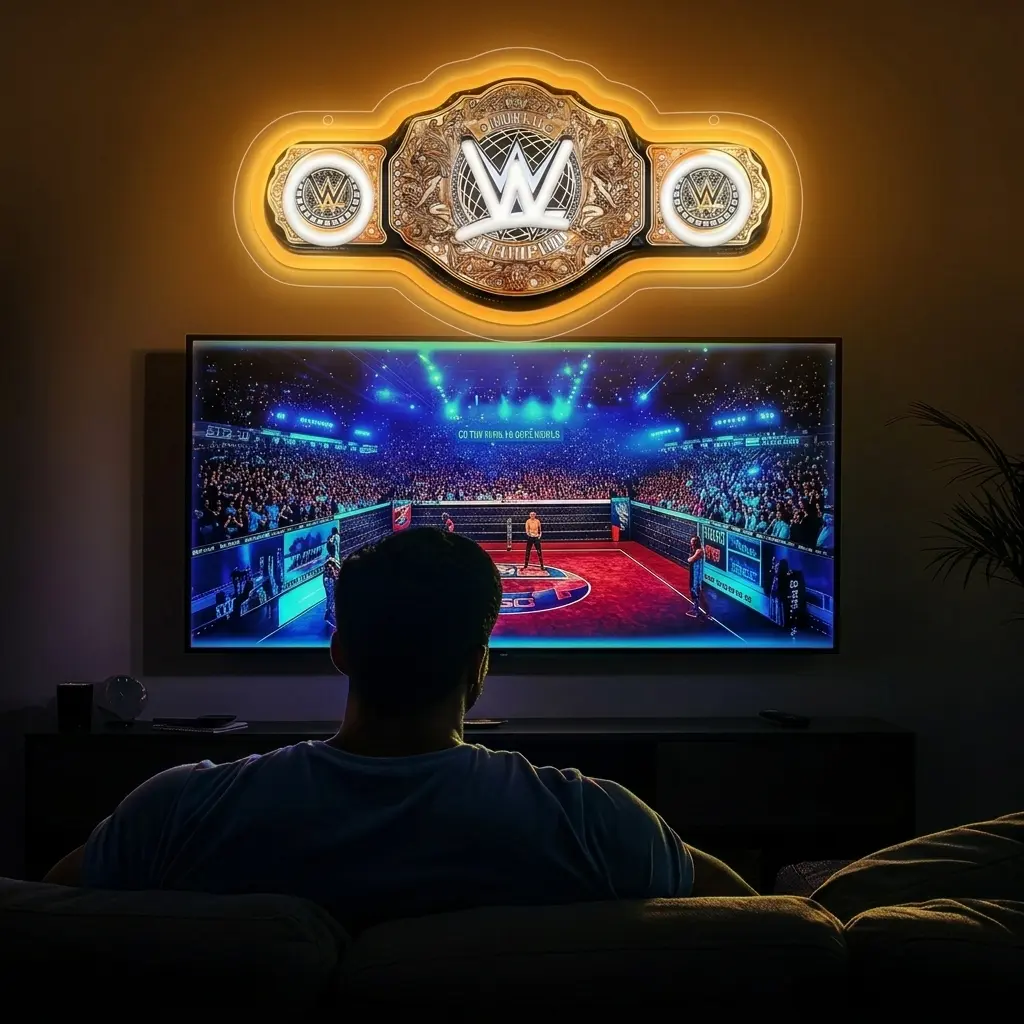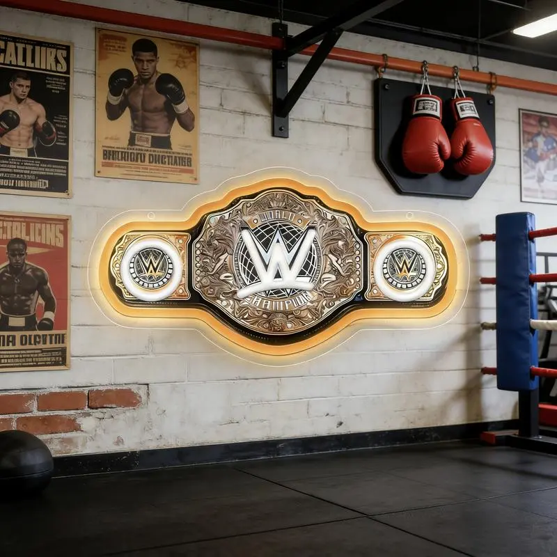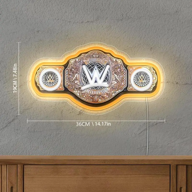 WWE World Championship Belt Neon Sign Wrestling Neon Light LED Wall Decor for Gaming Bedrooms, Match Parties, Sports Fan Gifts, Wrestling Gifts, Sports themed Lighting, Gym Decor and Man Cave