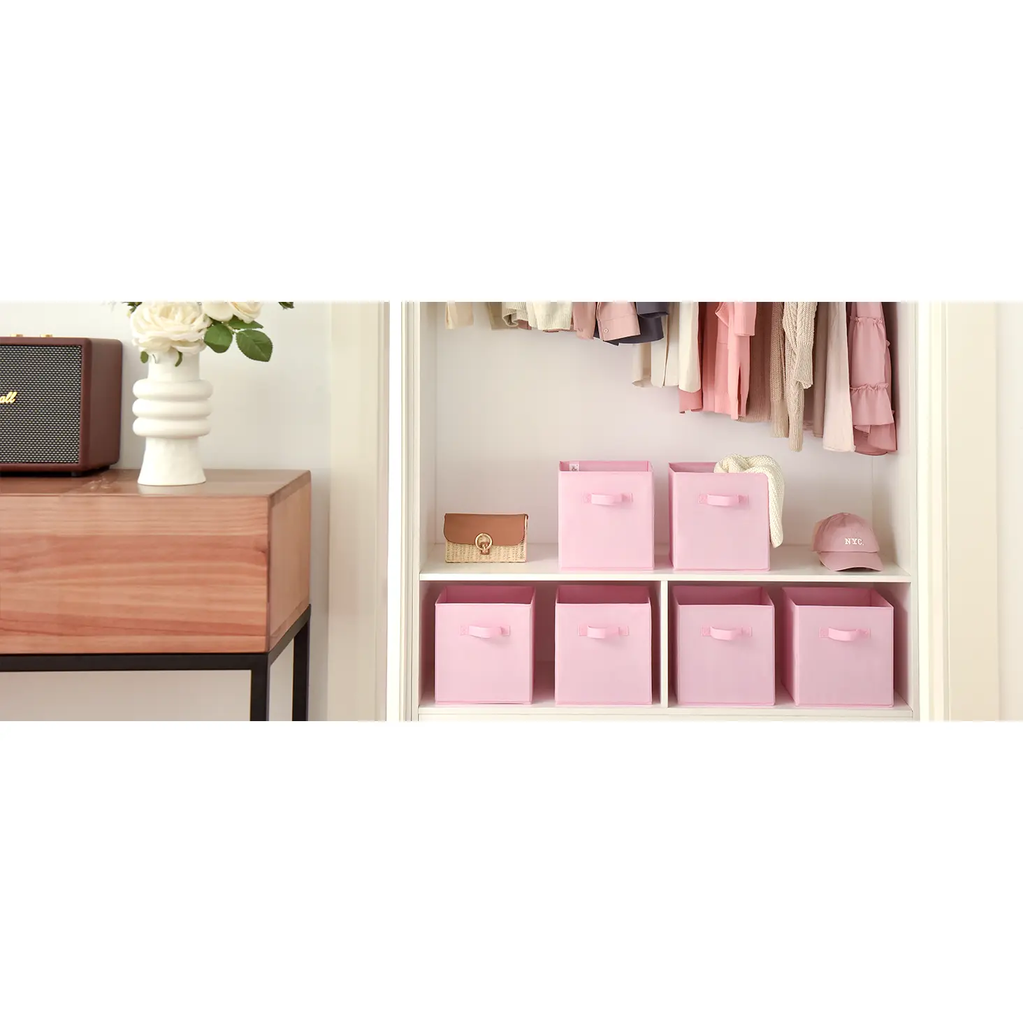 ·Each cube storage box has a sturdy handle sewn onto the front, and the cube itself can also be used as a drawer.The front handle is easy to pull, making it convenient to grab and move